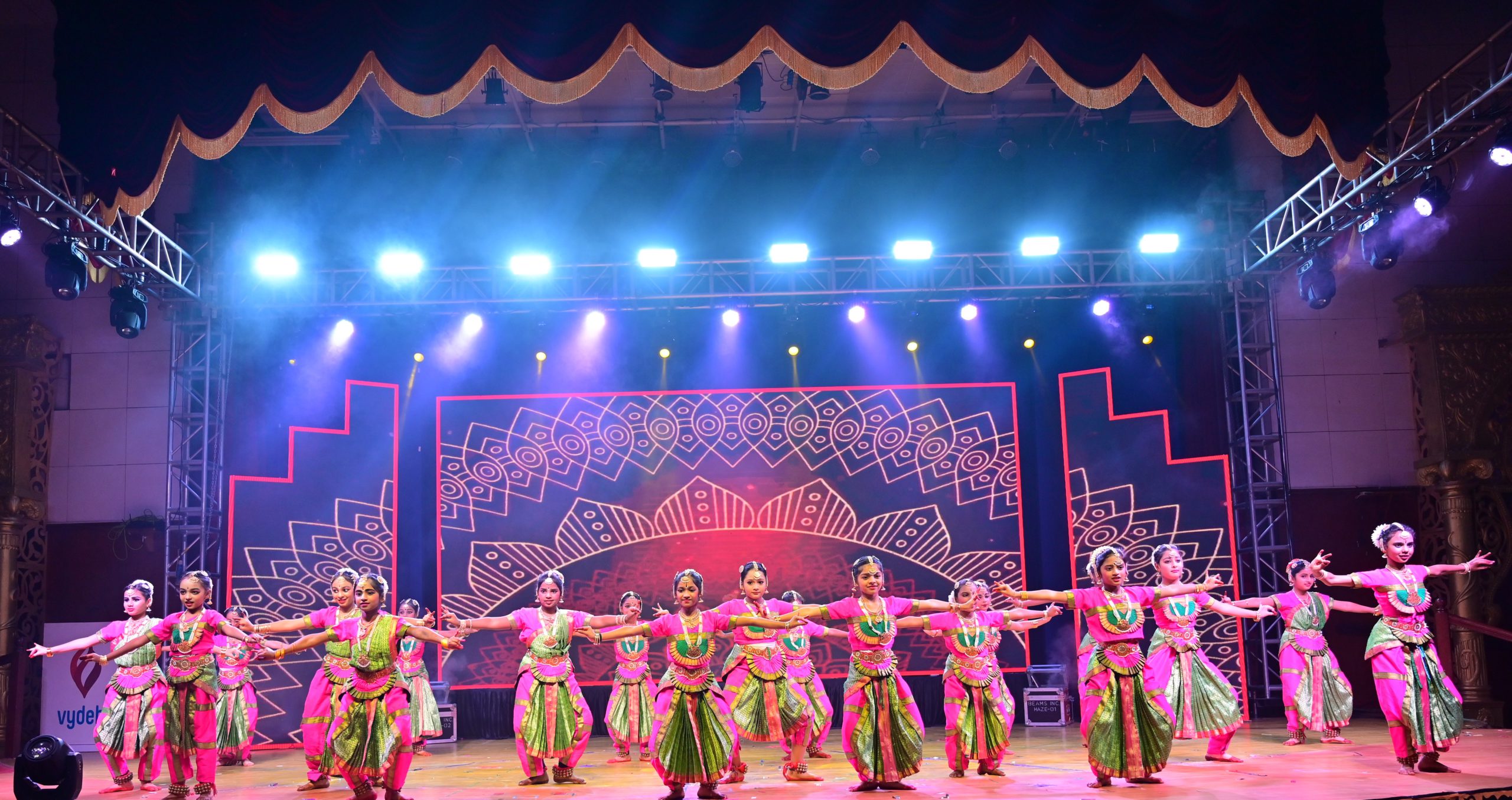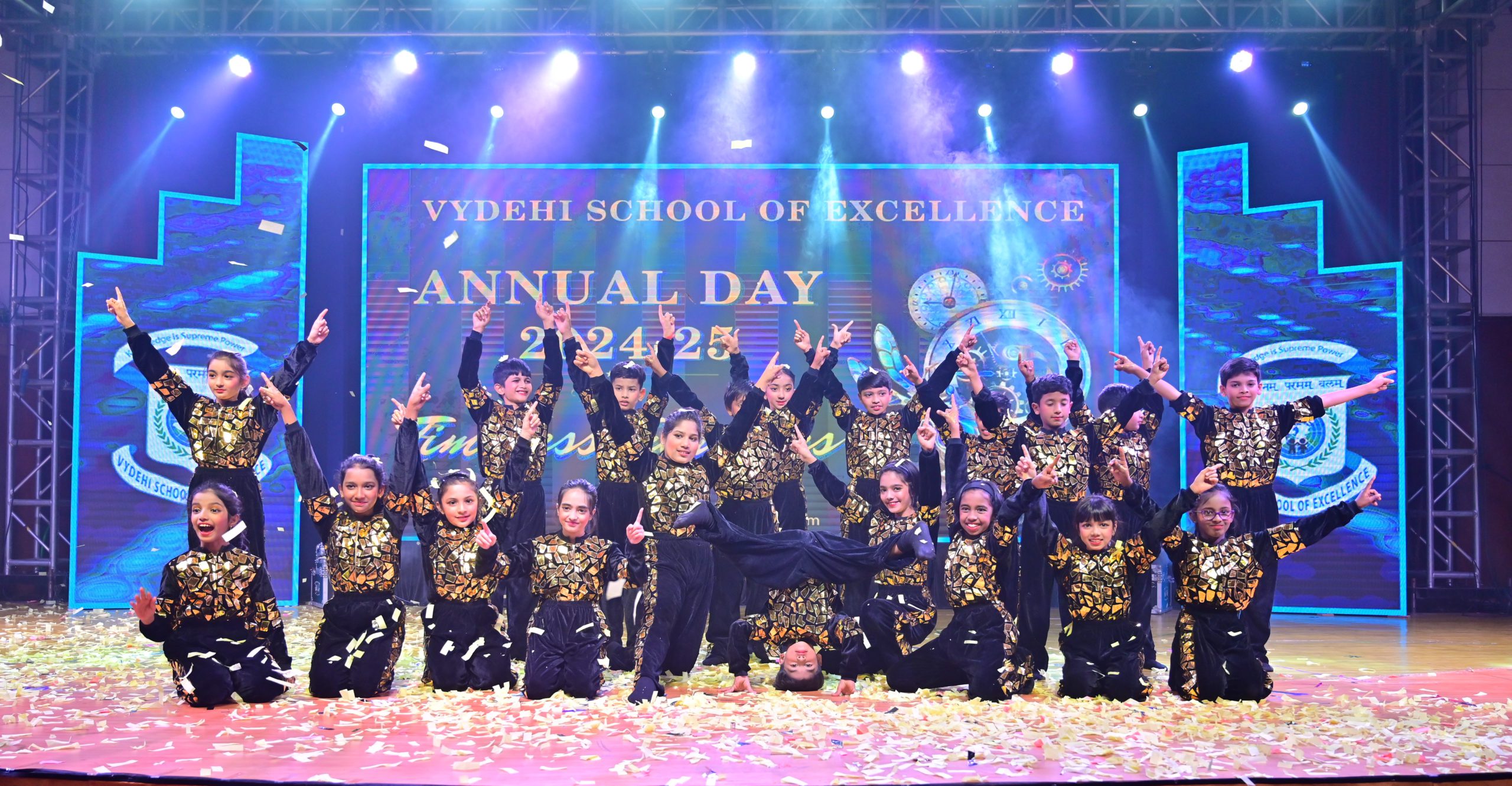 The much-awaited Vydehi School Primary Annual Day was a grand success, leaving an indelible mark on the hearts.,” the event celebrated the limitless creativity and boundless dreams of young minds, showcasing a mesmerizing blend of talent, hard work, and artistic brilliance.The evening began with a lighting the ceremonial lamp and setting the stage for an evening filled with wonder. The theme was beautifully woven into the performances, taking the audience on a journey beyond the ordinary.