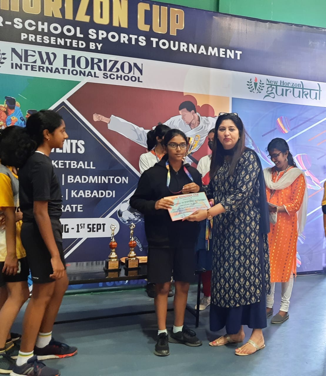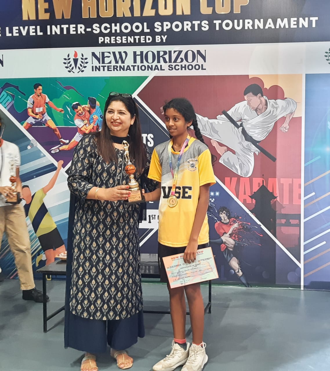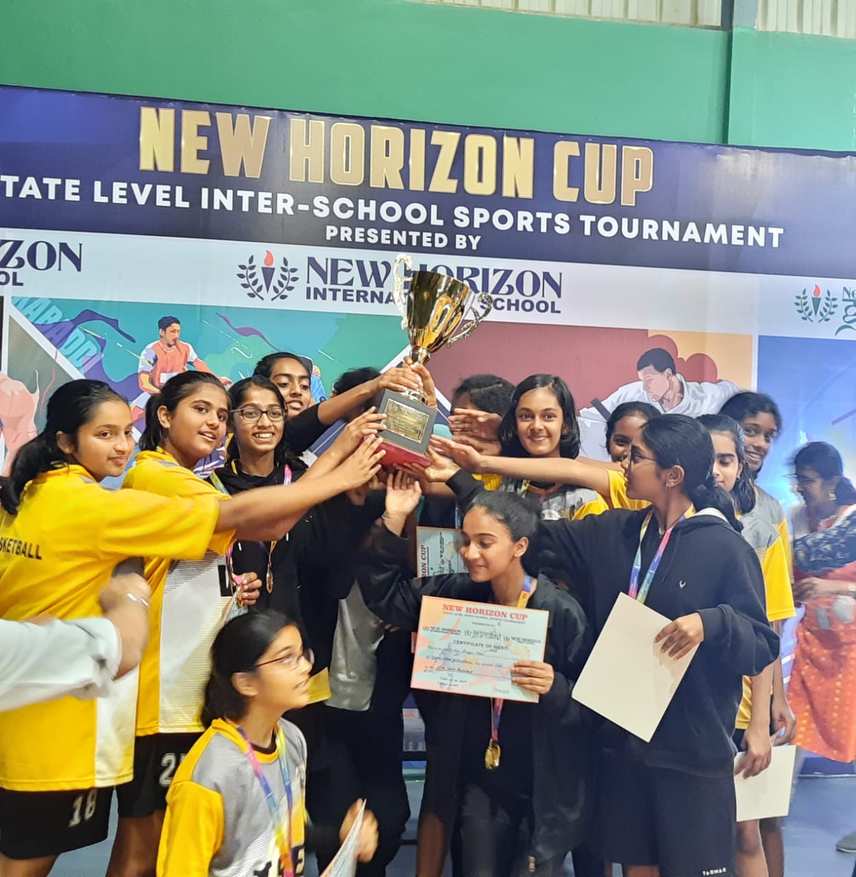VYDEHI SCHOOL OF EXCELLENCE is very excited to announce the historical win of our BASKETBALL team (GIRLS) U-14 CATEGORY in the ‘NEW HORIZON CUP’ State Level Tournaments conducted by New Horizon Public School, New Horizon Gurukul & New Horizon International School. JAYASHREE CHIDAMBARAM was awarded the Most Valuable Player (MVP) of the match.