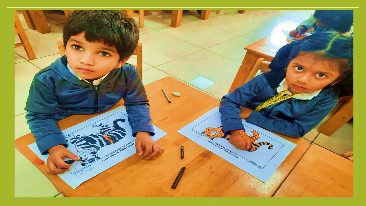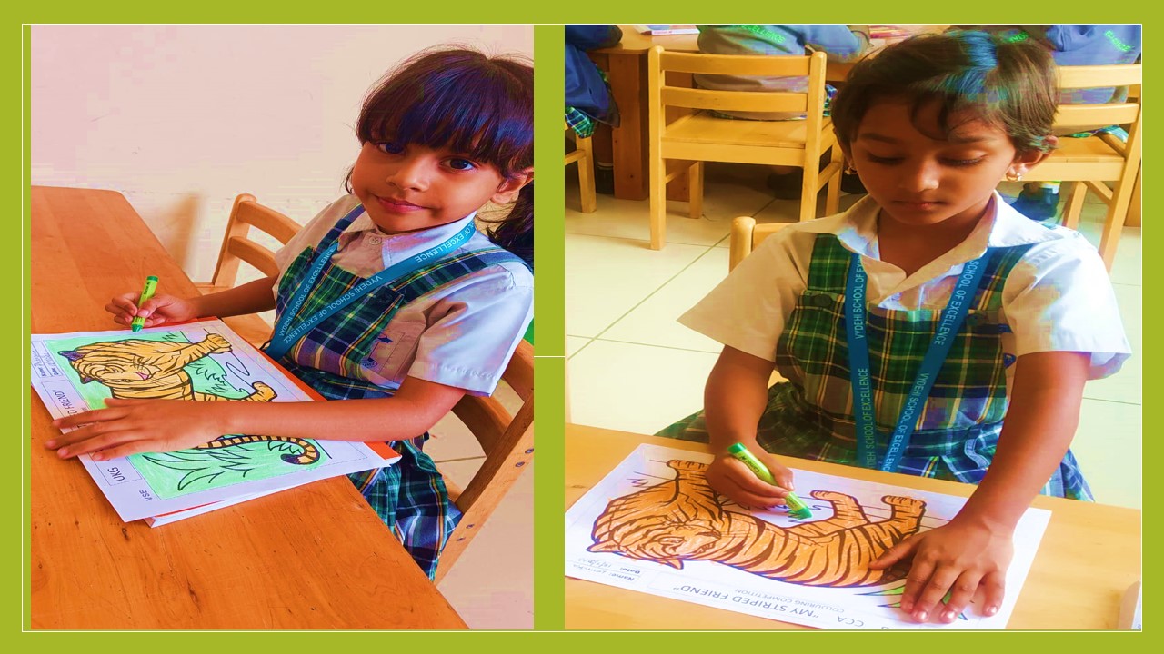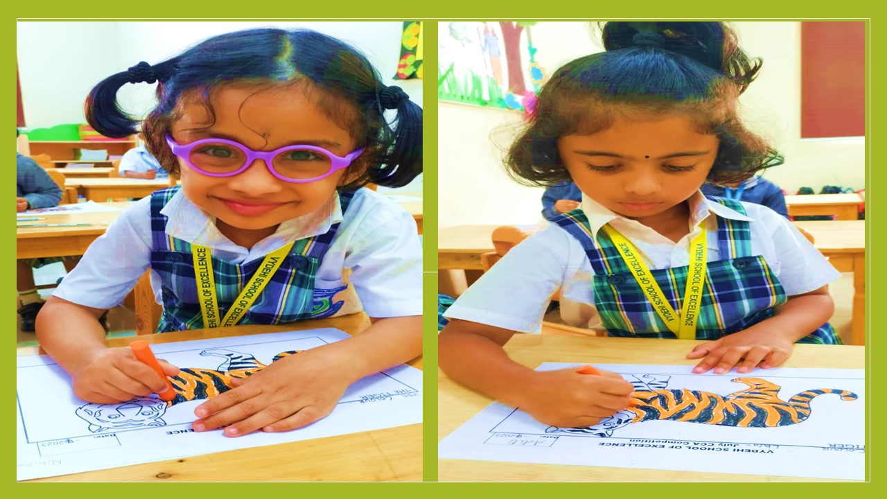 Vydehi School of Excellence organized CCA Colouring Competition on the theme “Save the Stripes”, held on July 18, 2023. Colouring helps in self-expression, colour recognition, building fine motor skill and coordination. As part of the Tigers’ Day Activity, students were engaged in Colouring competition. It sparked the curiosity of the young minds and made them aware of the importance of protecting these magnificent creatures.