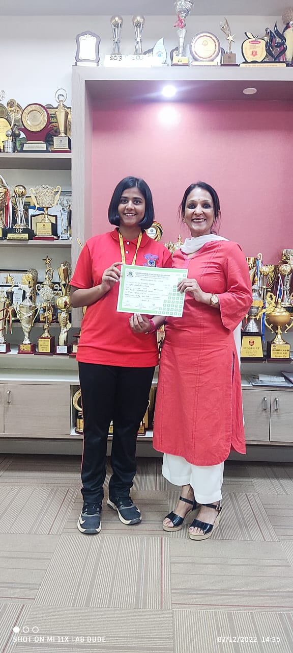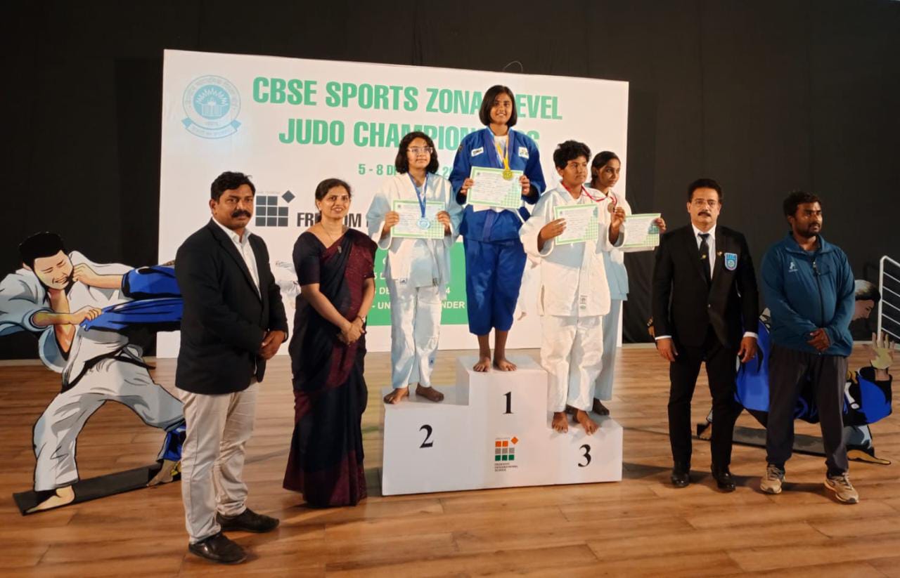 We are proud to announce that NIMISHA MISHRA of GRADE 8 has won GOLD MEDAL in CBSE JUDO COMPETITION UNDER 14 AGE 50KG+ WEIGHT category. CBSE does Nationals every year and for selecting the same they do cluster wise competition. Cluster consist of Karnataka, sangli, kohlapur etc. So, in cluster judo competition she ranked no 1 won gold medal in under 14 age 50Kg+ weight category and now she is selected for Nationals.