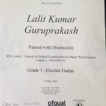 Vydehi School of Excellence is proud to announce that Lalit Kumar Guruprakash of Grade 8 has passed with distinction the RSL Level 1 Award in Graded Examination in Music Performance in Electric Guitar under RSL Awards – Grade 1 – Performance Certificate. Candidates can choose to play all five pieces from the repertoire from the Rock school, RSL Classical Graded Book or choose to record up to three free choice pieces from their own composition.