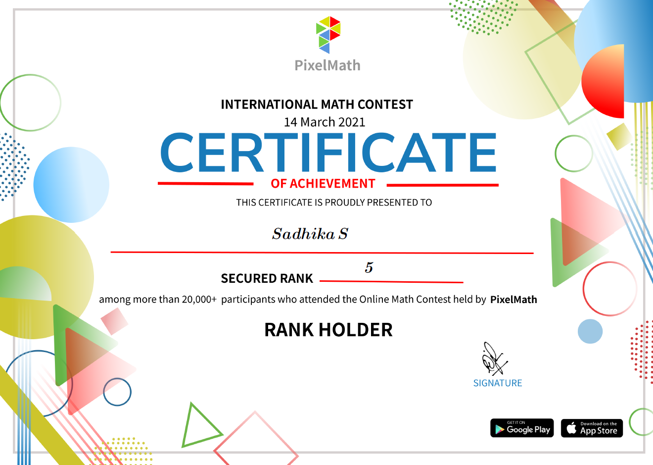 To make math practice a fun and collaborative experience for students and on account of the International Math Day, 14th March 2021, PixelMath – an online app based organization conducted an online International Math contest for students. Vydehi School of Excellence is proud to announce that Sadhika Sudeesh of Grade 4 has secured the 5th Rank. Congratulations!!