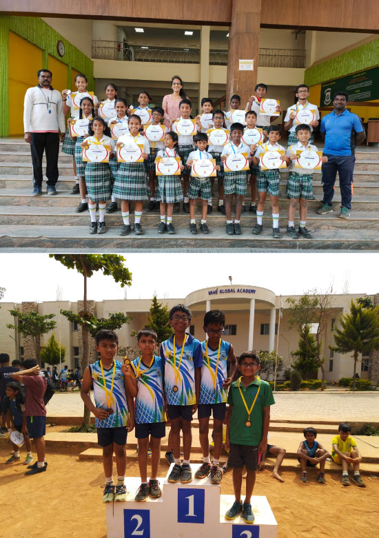 Vahe Interschool Athletic meet was organized by Vahe Global academy and our students participated in under 8, under 10, under 14 and under 16 categories and brought home laurels in 50 meters, 100 meters, 200 meters and 400 meters running race and Relay race. Persistence can change failure into extraordinary achievement. The little sportsmen of Vydehi proved it true.
