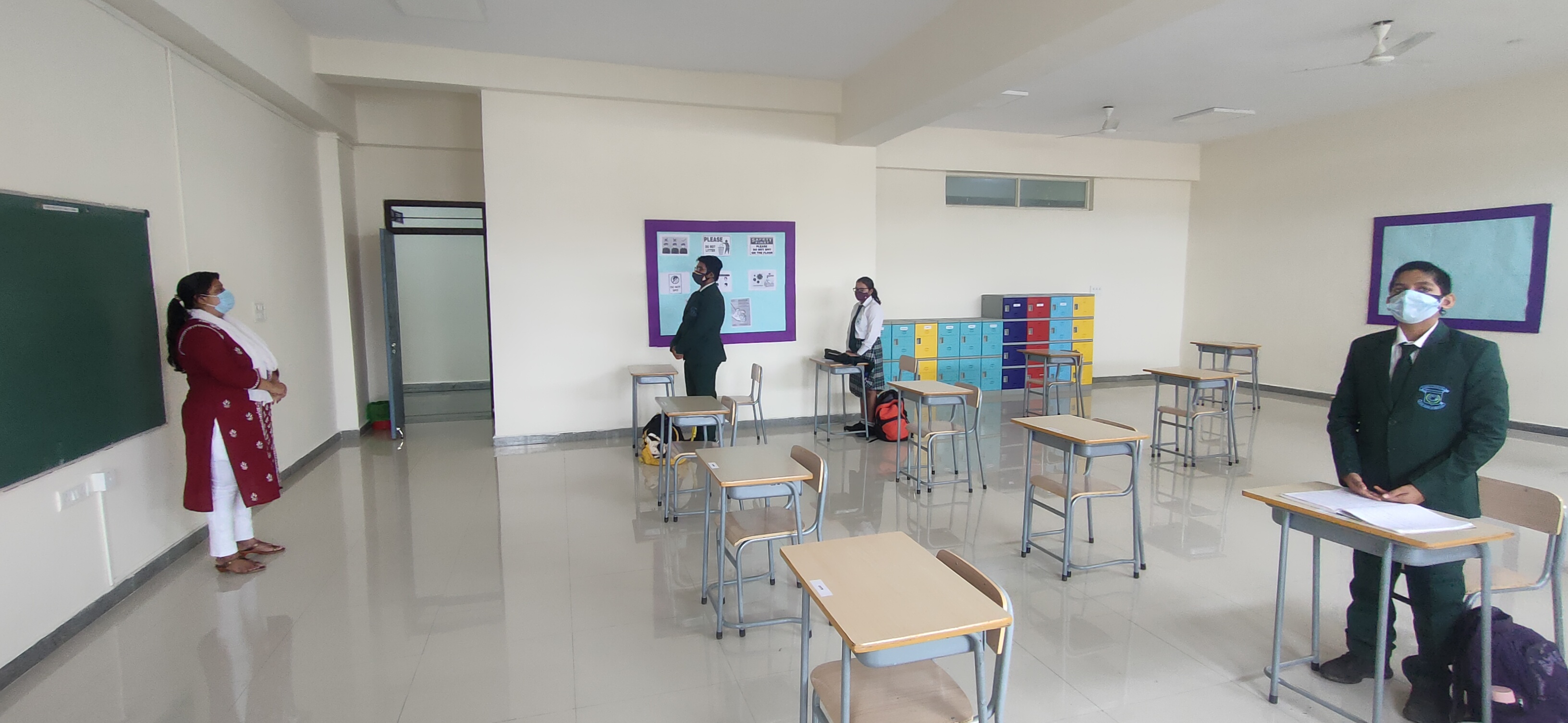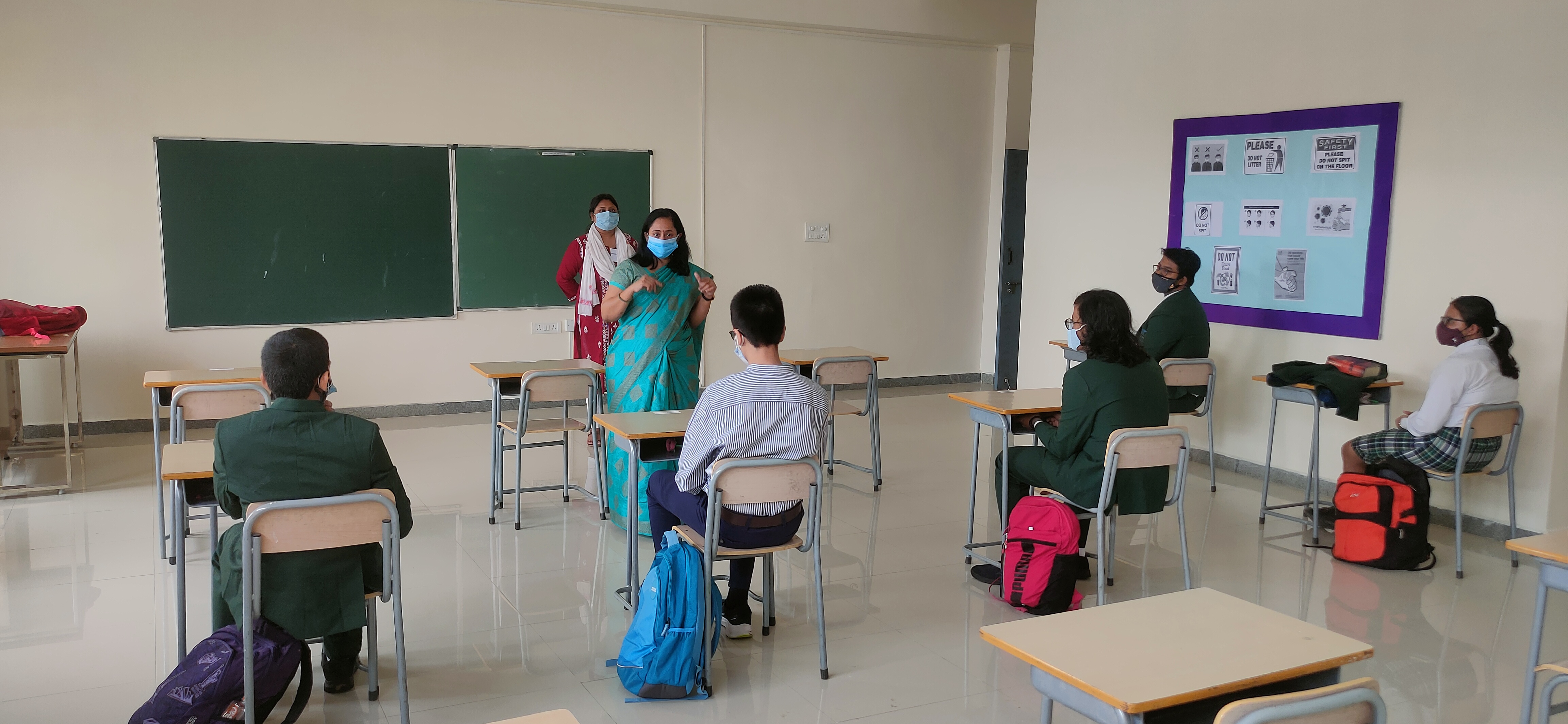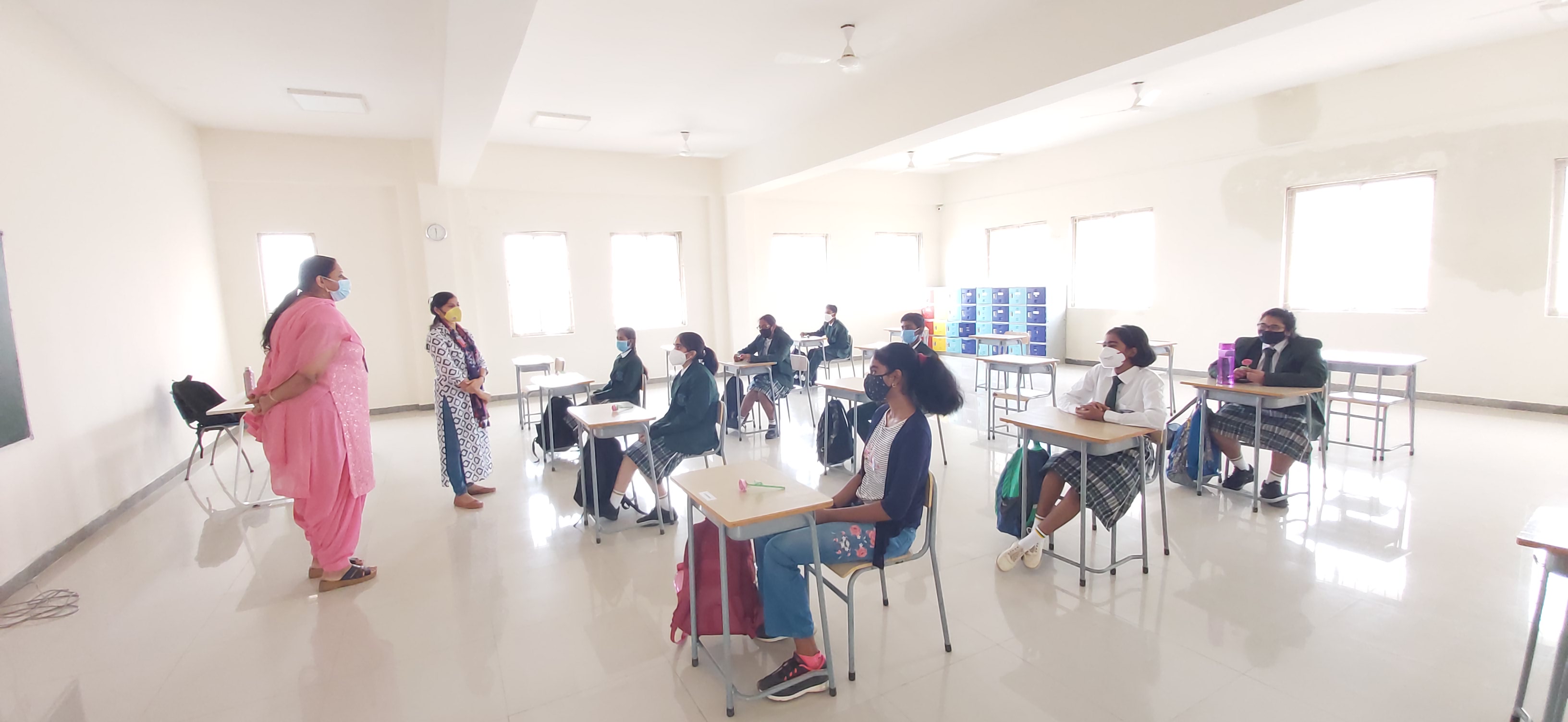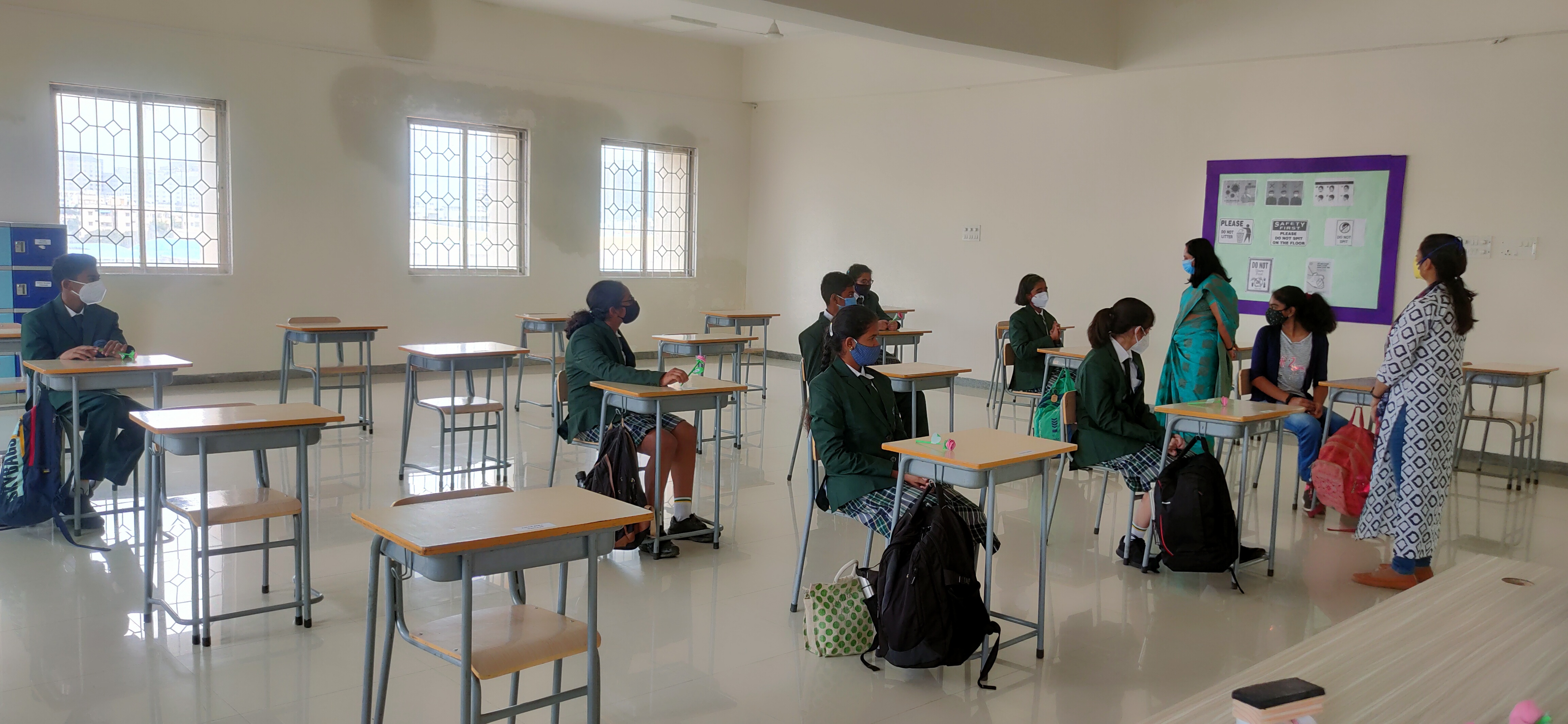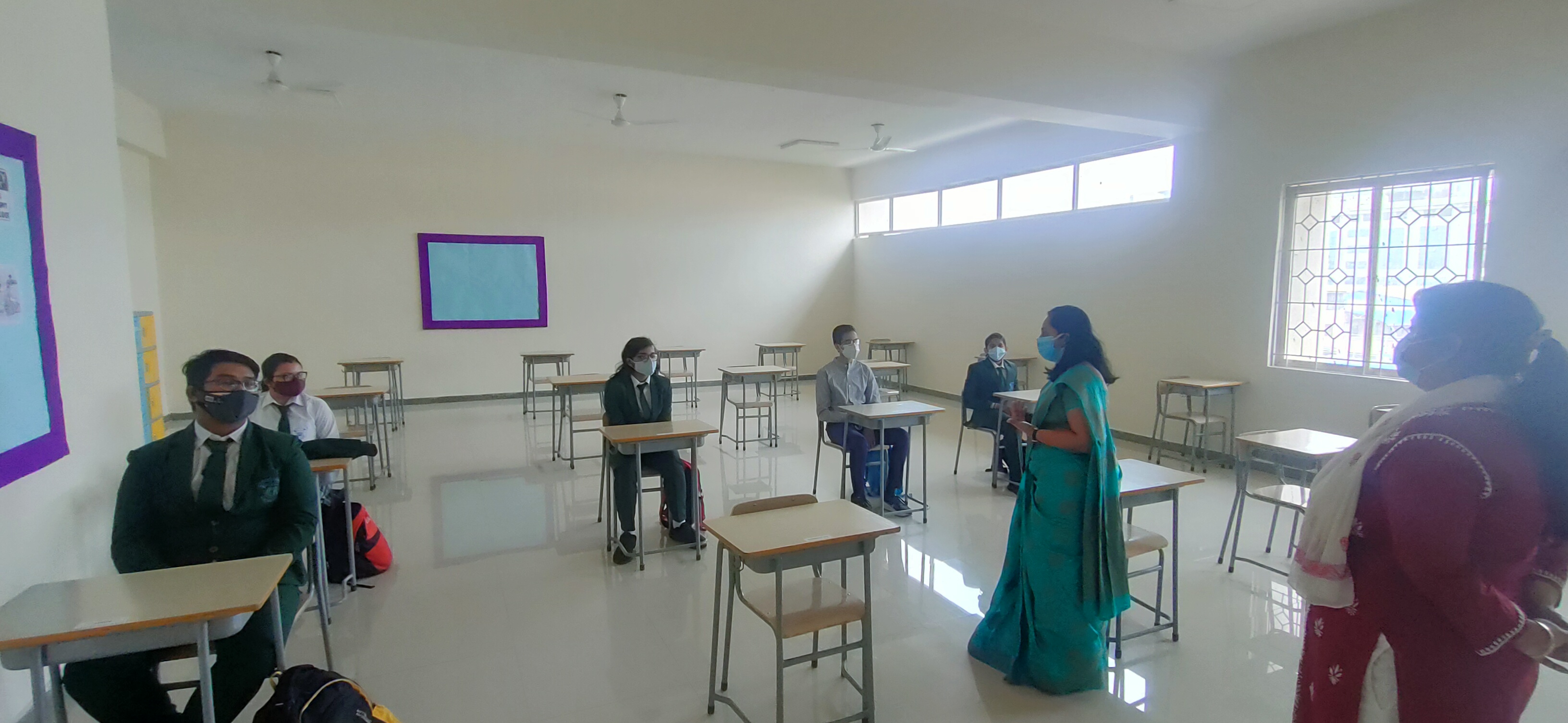 We, at Vydehi School of Excellence welcomed our Grade 9&10 students back to a traditional face to face school after a hiatus of almost 18 months. Though the numbers were less, the spirits were high. The day was planned for the acclimatization of the students to break the online routine. Interactive sessions by the Principal, Vice Principal and Counselor made the students comfortable. They were briefed upon the SOPs and the importance of adherence to COVID protocols. Teachers by passed the normal route of teaching and conducted activities on “Swachhata” stressing on the importance of social distancing and other safety guidelines.