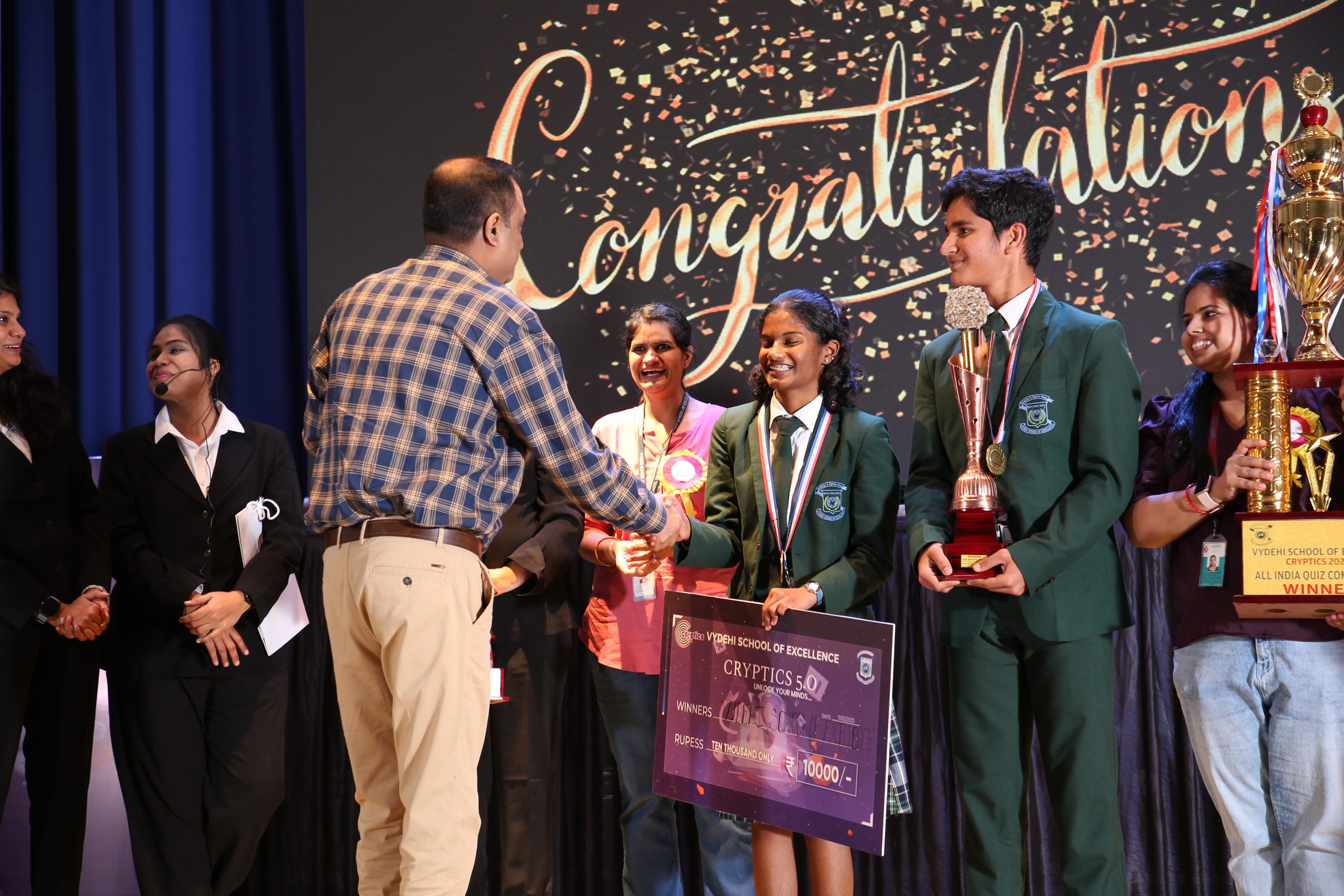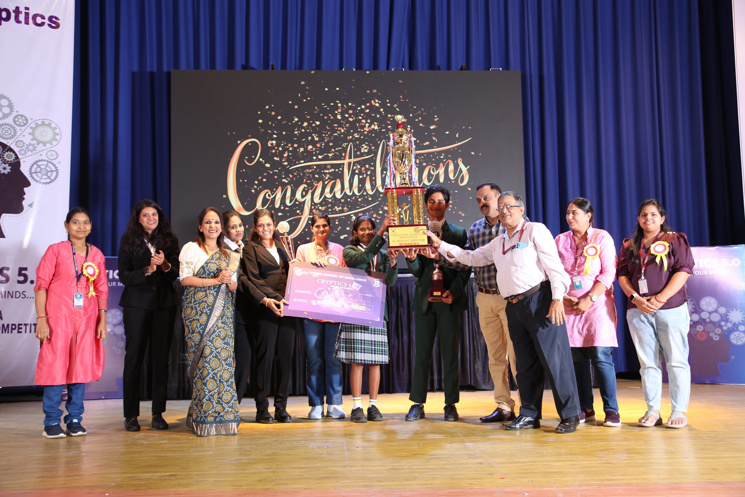 VYDEHI SCHOOL OF EXCELLENCE is proud to announce that we have successfully organized the All India level tech-quiz competition CRYPTICS 5.O in our school campus, on Saturday the 11th of February, 2023. 212 schools from all over the nation have participated in the competition and showcased their immense knowledge of technology.