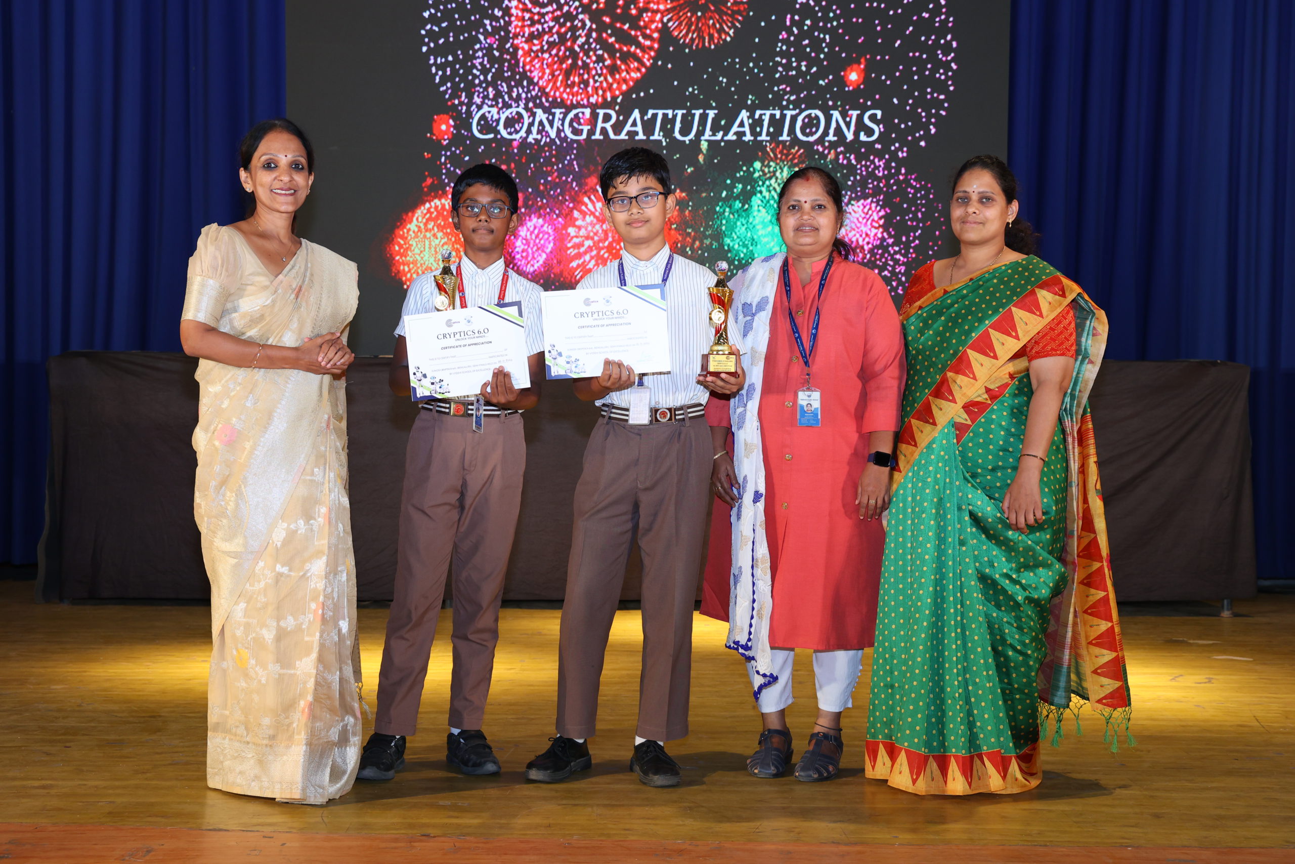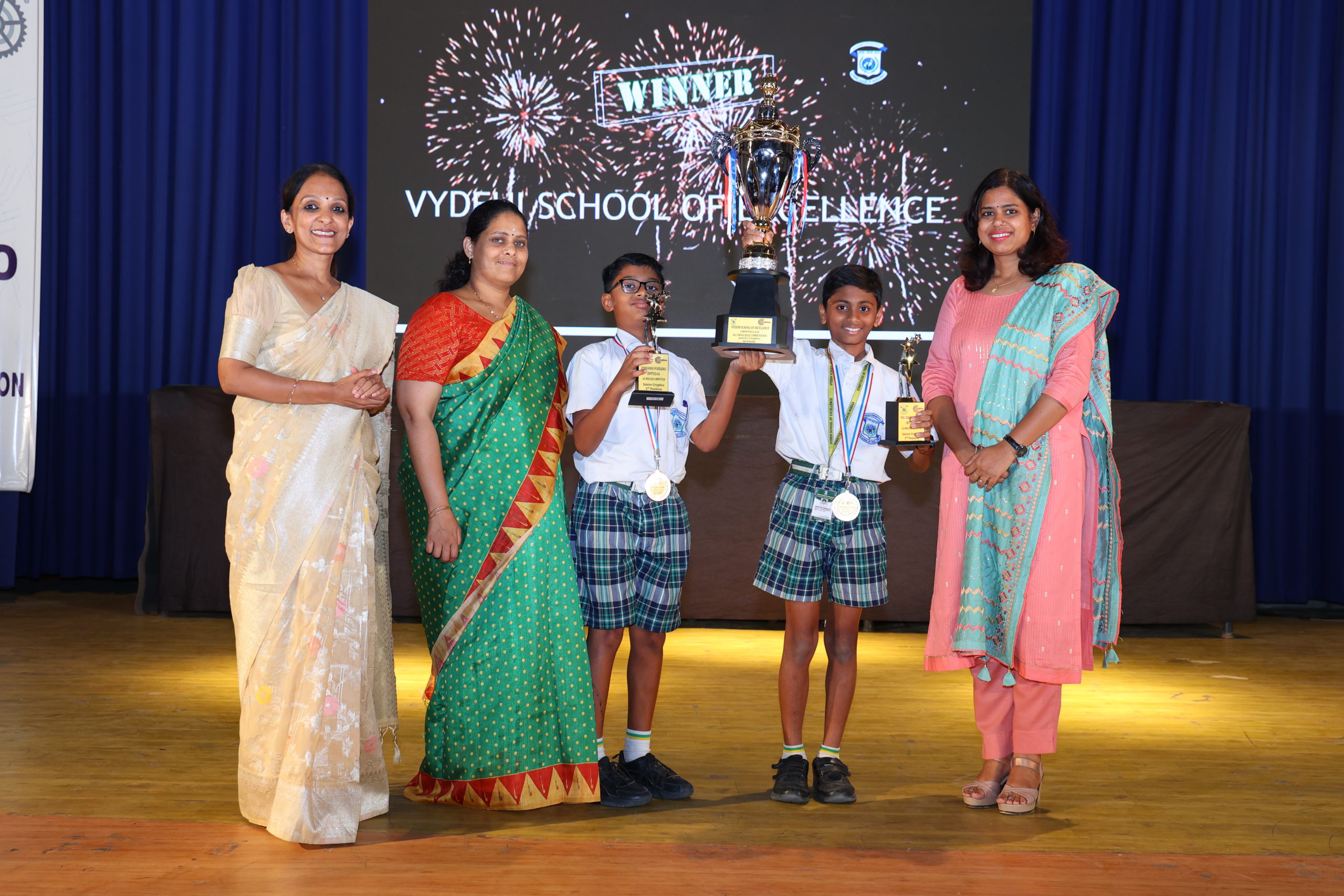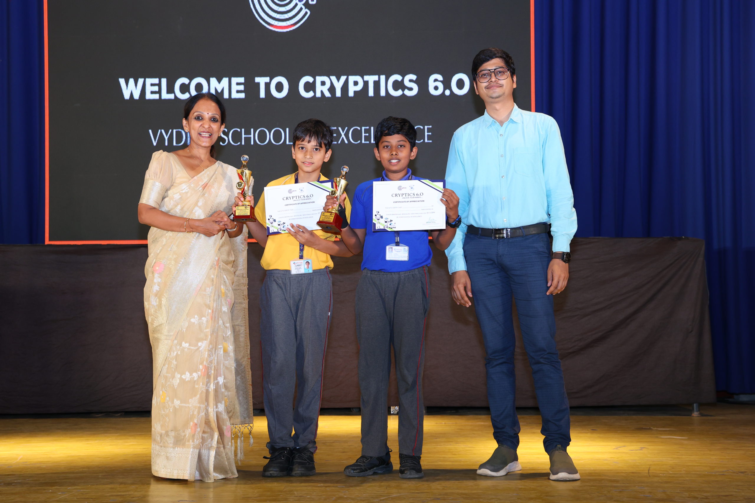 Cryptics Juniors 6.O, An All India computer quiz competition was an intricate analysis, It is an annual event held at Vydehi school of Excellence brought together young minds for a thrilling display of intellect and creativity. Students engaged in a variety of cryptic challenges, solving puzzles that tested their problem-solving skills and lateral thinking. The atmosphere buzzed with excitement as participants deciphered intricate codes, unraveling mysteries and showcasing their prowess in the cryptic world. The event not only fostered a spirit of healthy competition but also sparked a genuine enthusiasm for the art of solving puzzles among the JUNIORS.