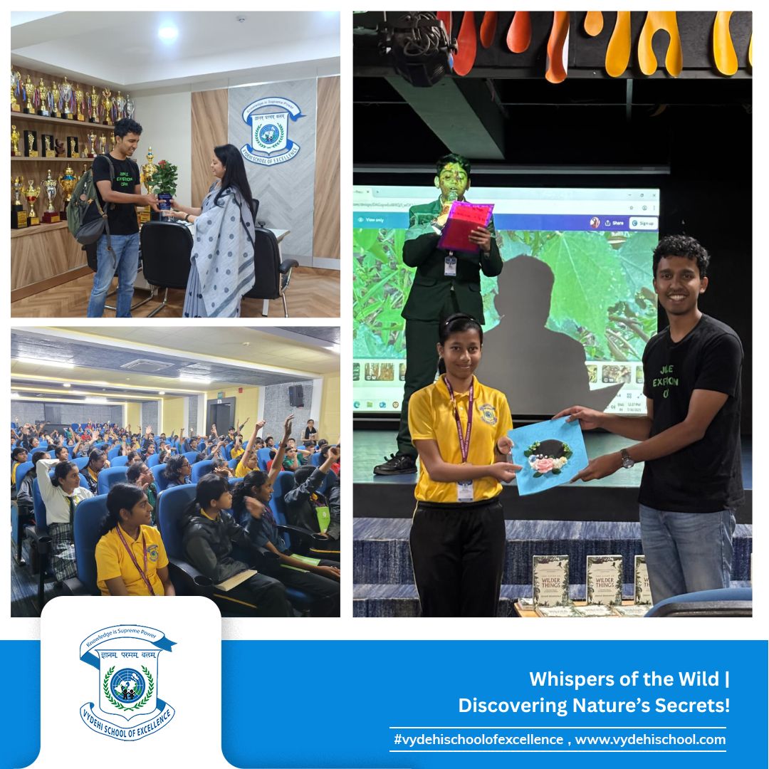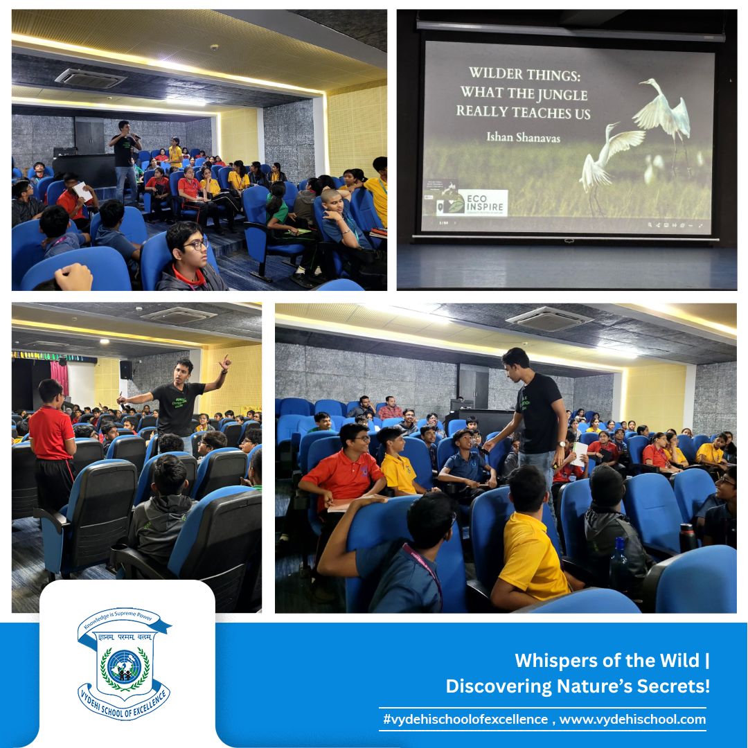 Vydehi School of Excellence recently hosted a vibrant and insightful workshop titled “What the Jungle Really Teaches Us”, conducted by wildlife enthusiast Ishaan Shanavas 🧠🐾.