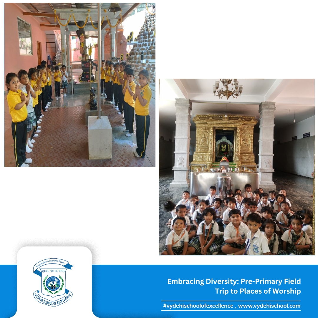 “Vydehi School of Excellence organised an insightful field trip for our Pre-Primary students on the 12th and 13th of February 2025, exploring the beauty of different faiths at a temple, church, and mosque in Whitefield. This immersive experience allowed our little learners to appreciate diverse cultures, architectural styles, and religious practices, fostering values of respect, harmony, and inclusivity.