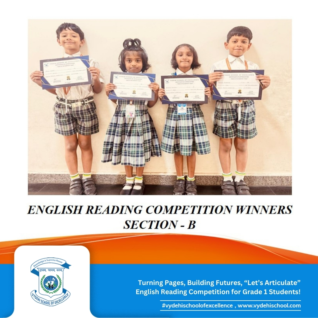 β¨ Turning Pages, Building Futures, βLetβs Articulateβ English Reading Competition at Vydehi School of Excellence!π