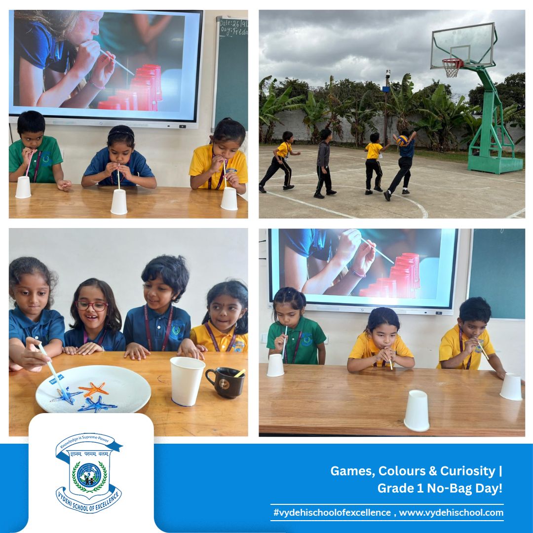 On 26th September 2025, Vydehi School of Excellence hosted a lively No-Bag Day for our Grade 1 students, turning classrooms into hubs of joy, creativity, and hands-on learning. ππ‘