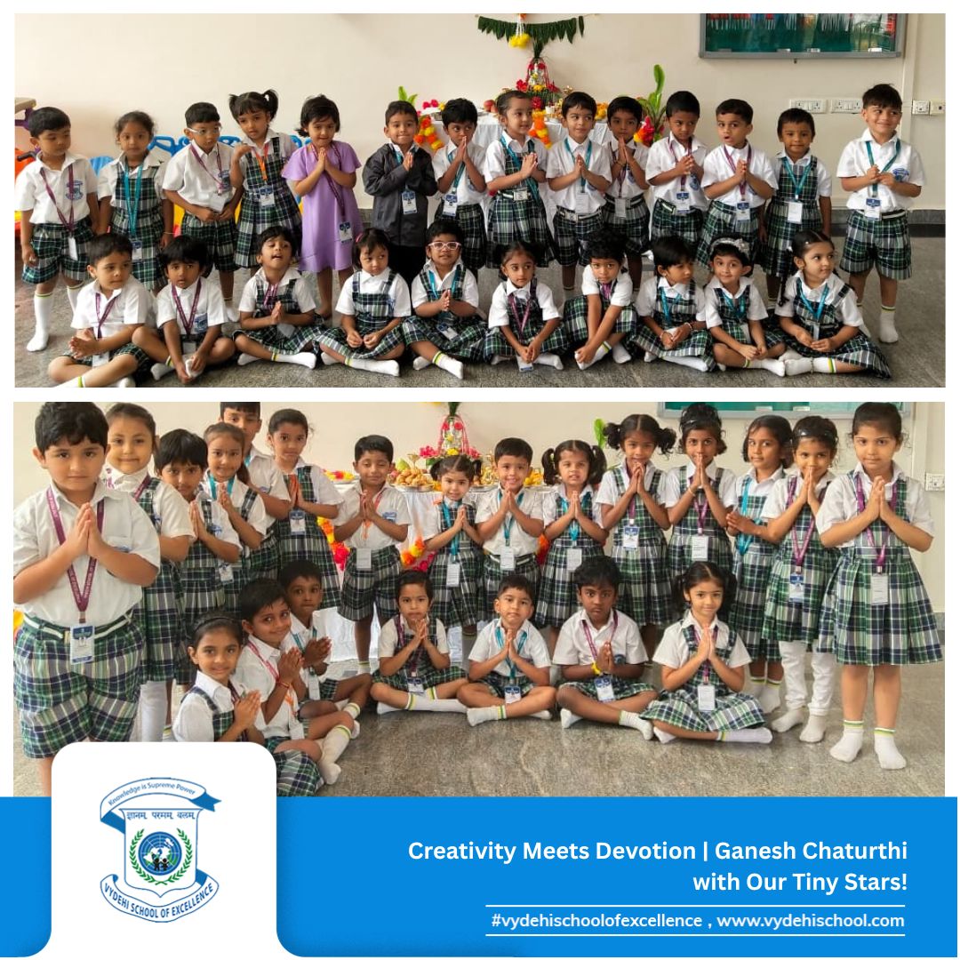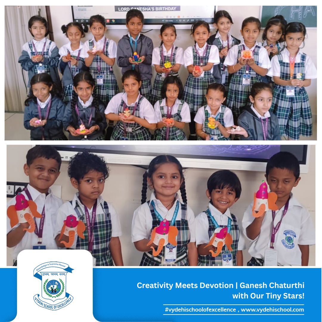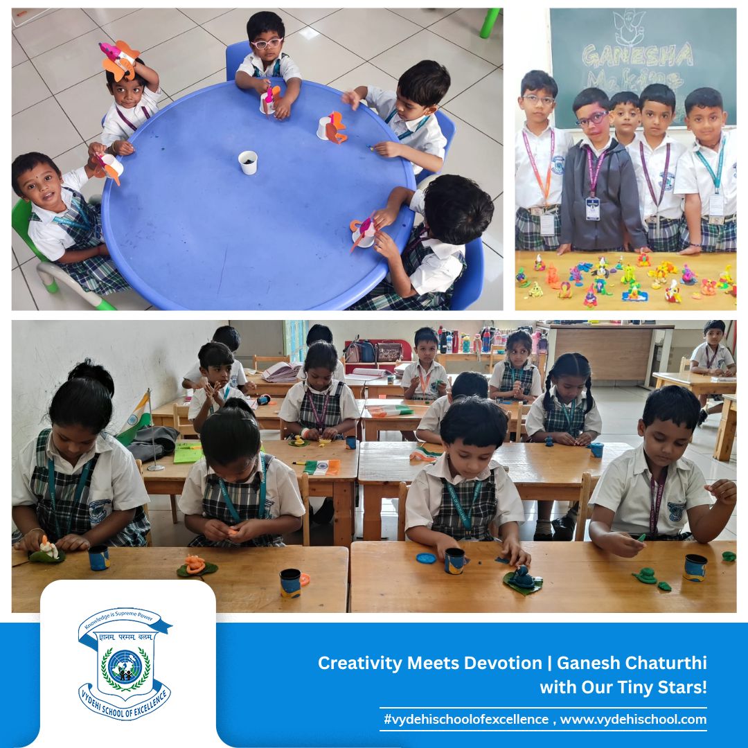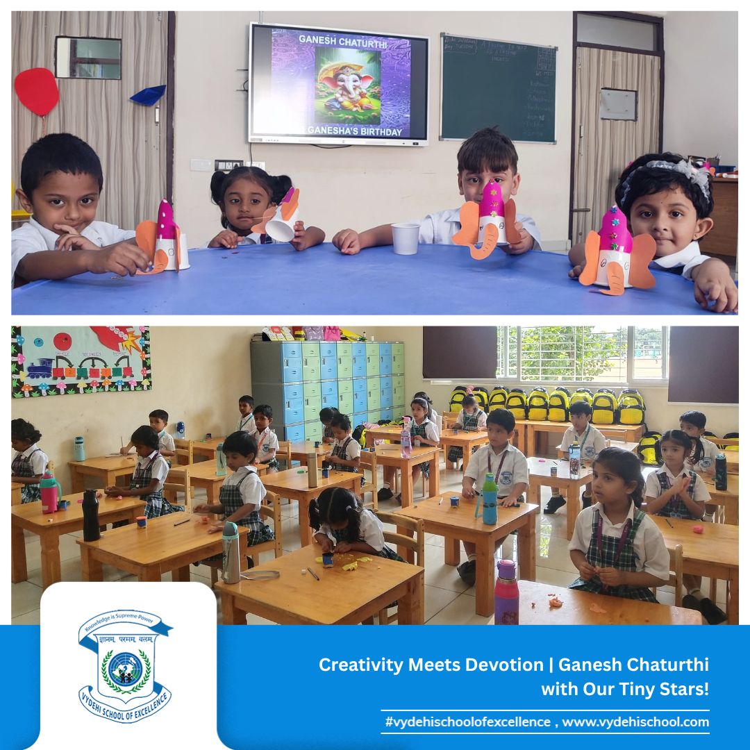 #VSE #VydehiSchoolofExcellence #GaneshChaturthiCelebration #GanpatiBappaMorya #FestivalOfWisdom #LittleLearnersBigDreams #ClayCreativity #HandsOnLearning #PrePrimaryCelebrations #YoungArtists #TraditionAndCreativity #SchoolCelebrations #FestivalsAtSchool #GaneshChaturthi2025 #CulturalLearning