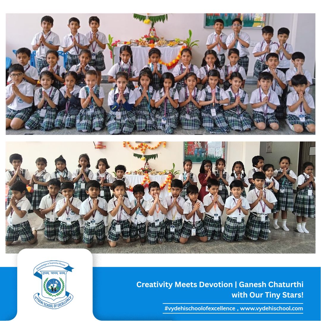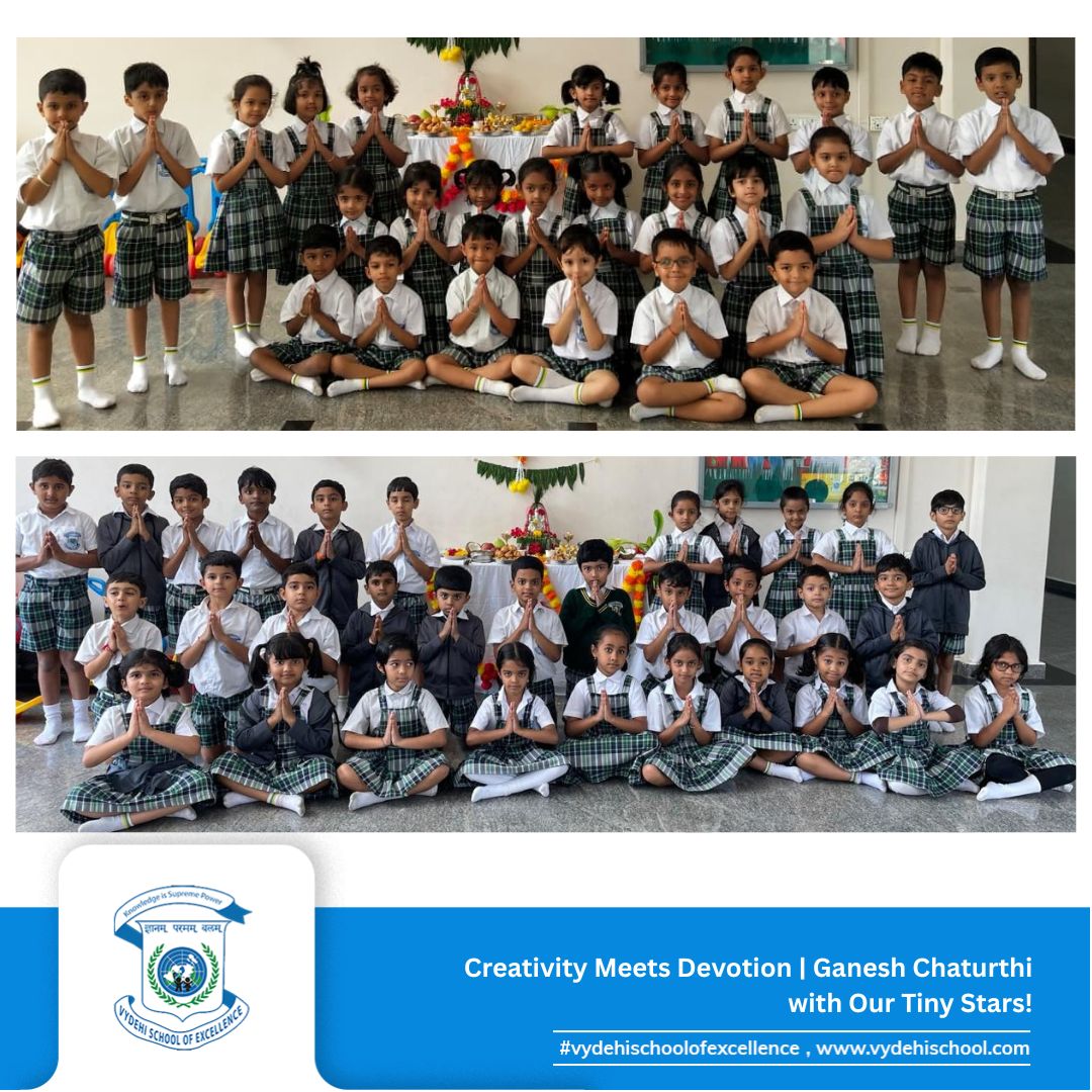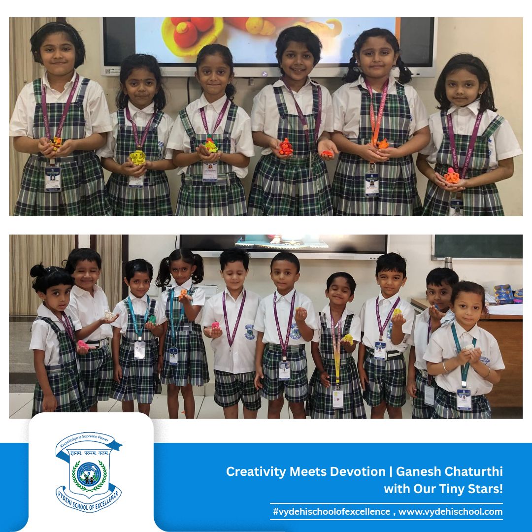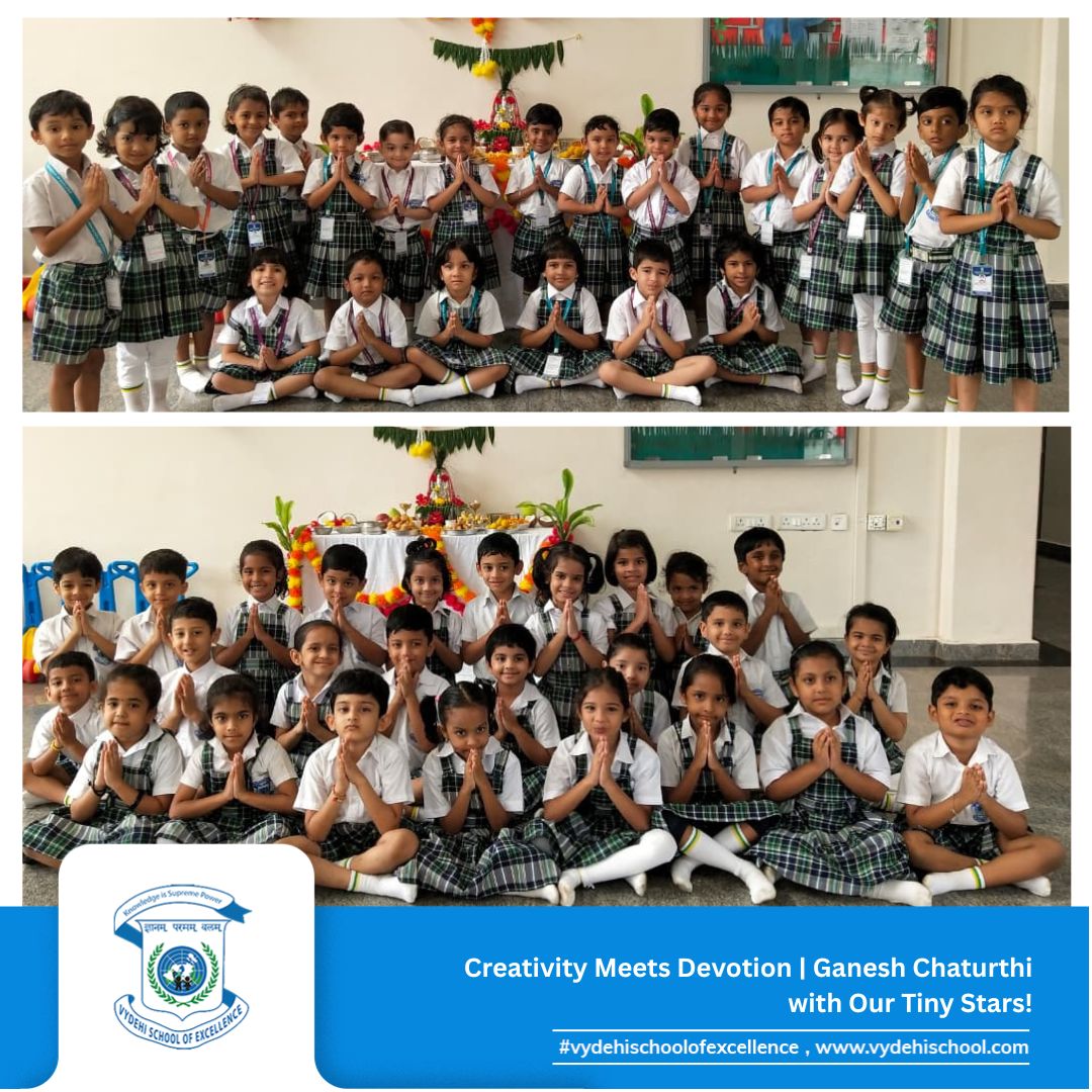 #VSE #VydehiSchoolofExcellence #GaneshChaturthiCelebration #GanpatiBappaMorya #FestivalOfWisdom #LittleLearnersBigDreams #ClayCreativity #HandsOnLearning #PrePrimaryCelebrations #YoungArtists #TraditionAndCreativity #SchoolCelebrations #FestivalsAtSchool #GaneshChaturthi2025 #CulturalLearning