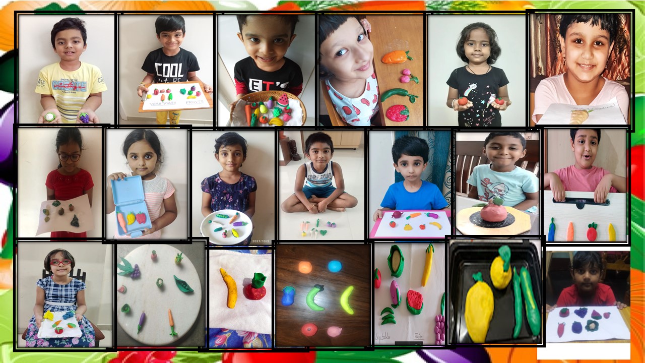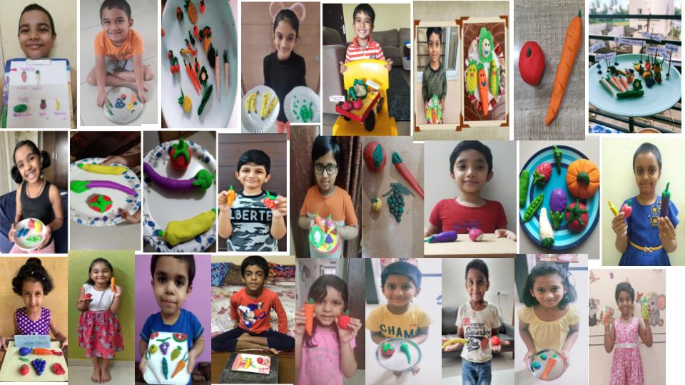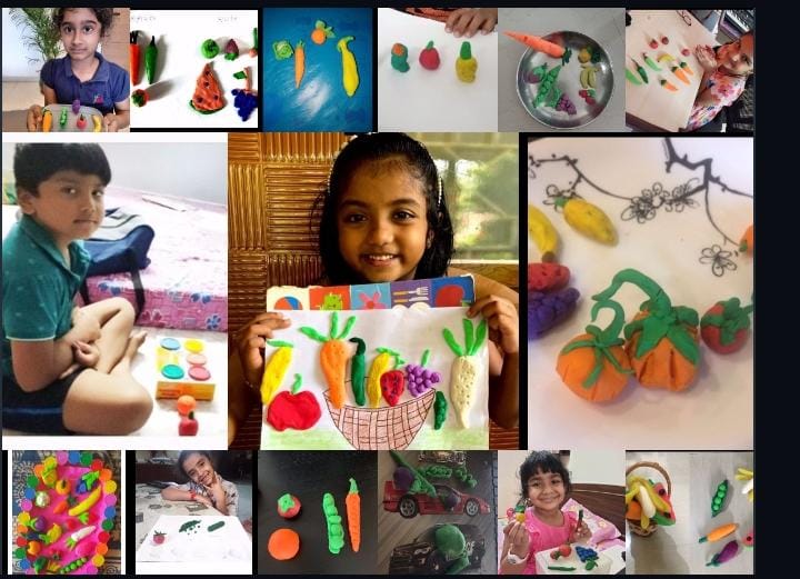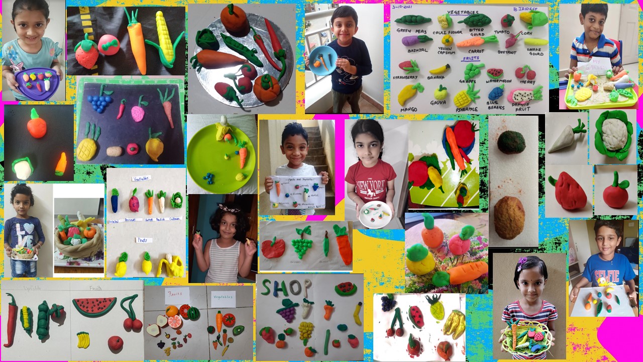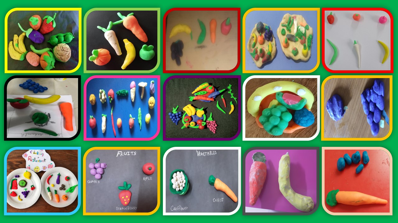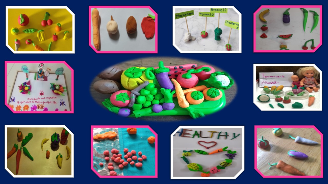 Students presented clay models on the topic fruits or vegetables.