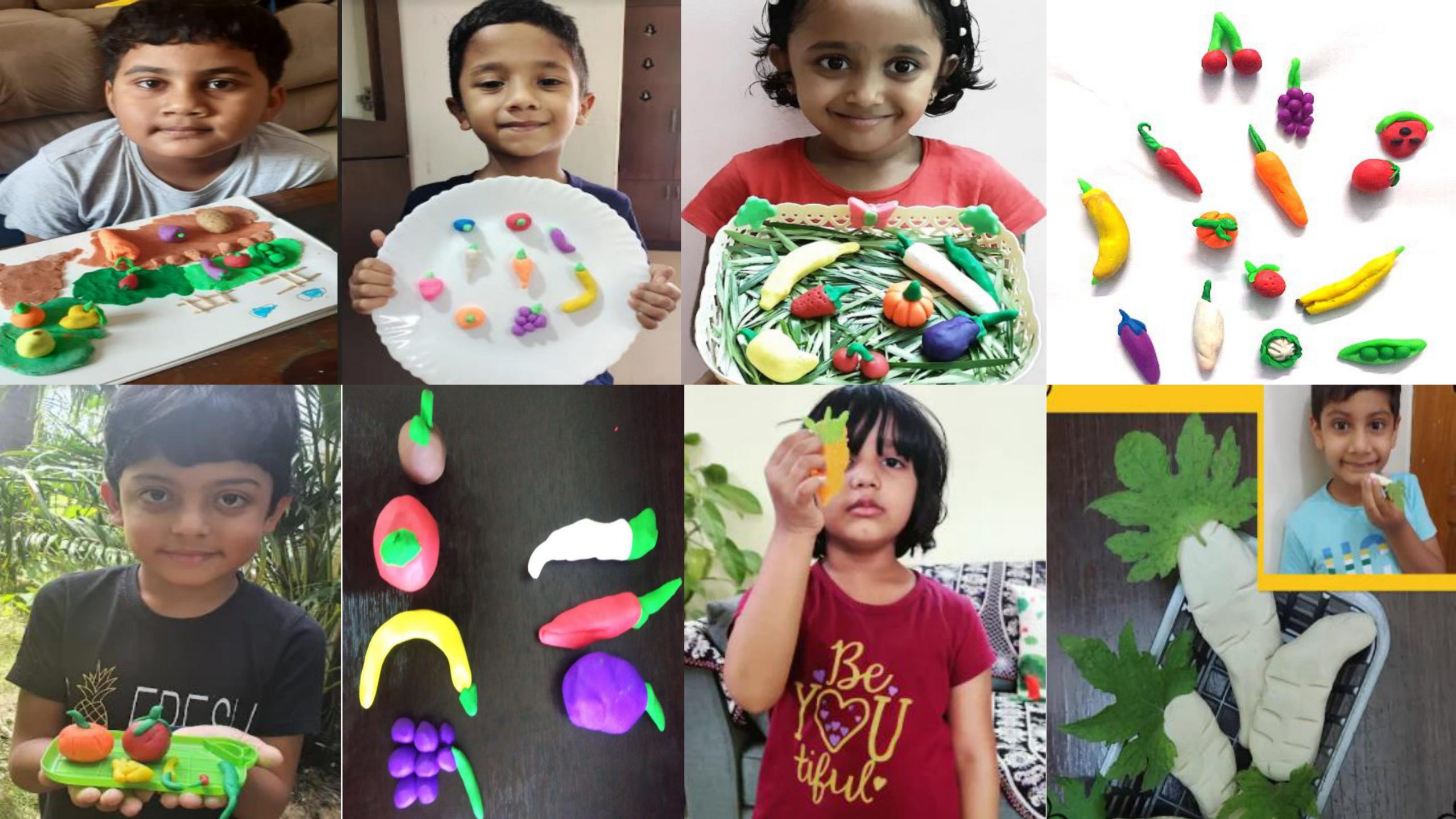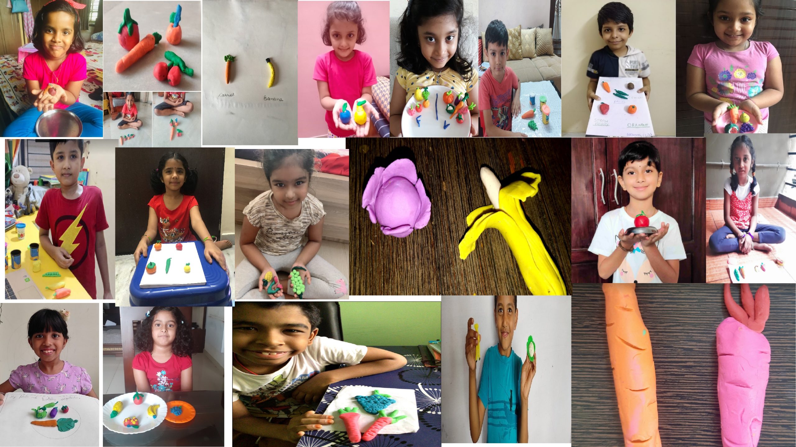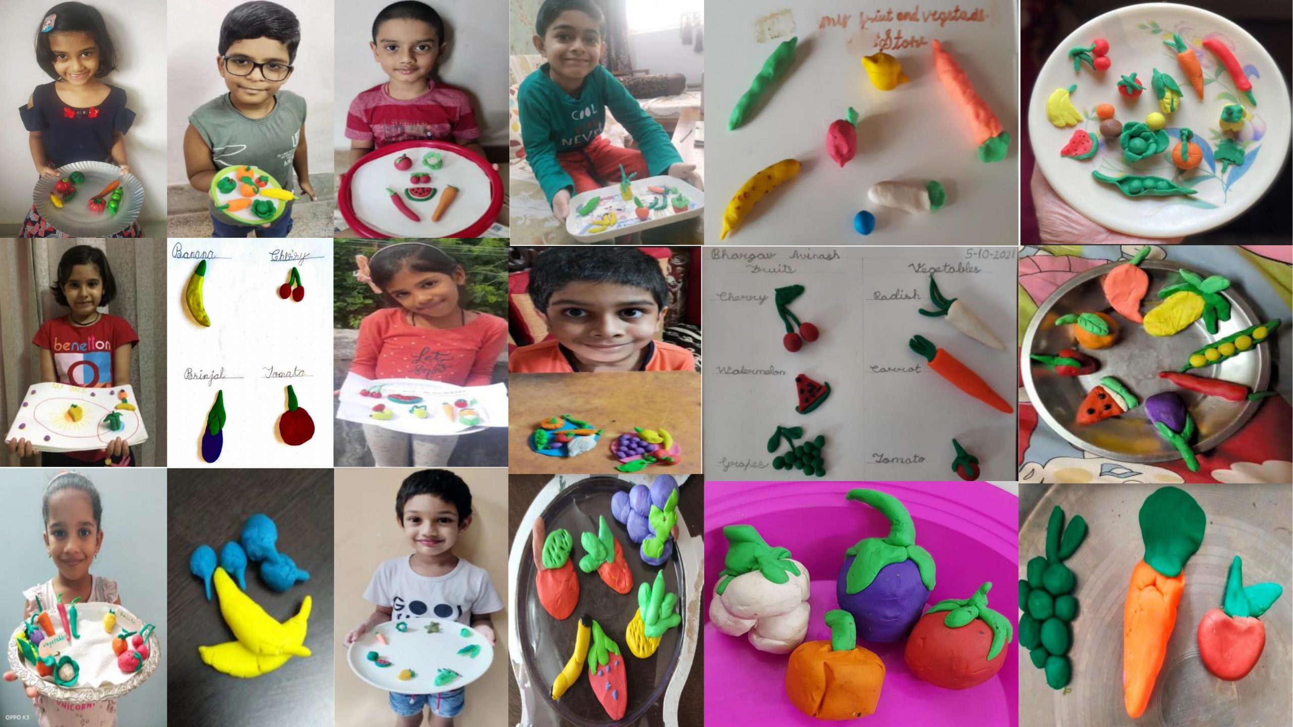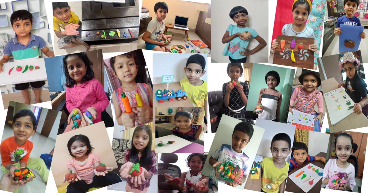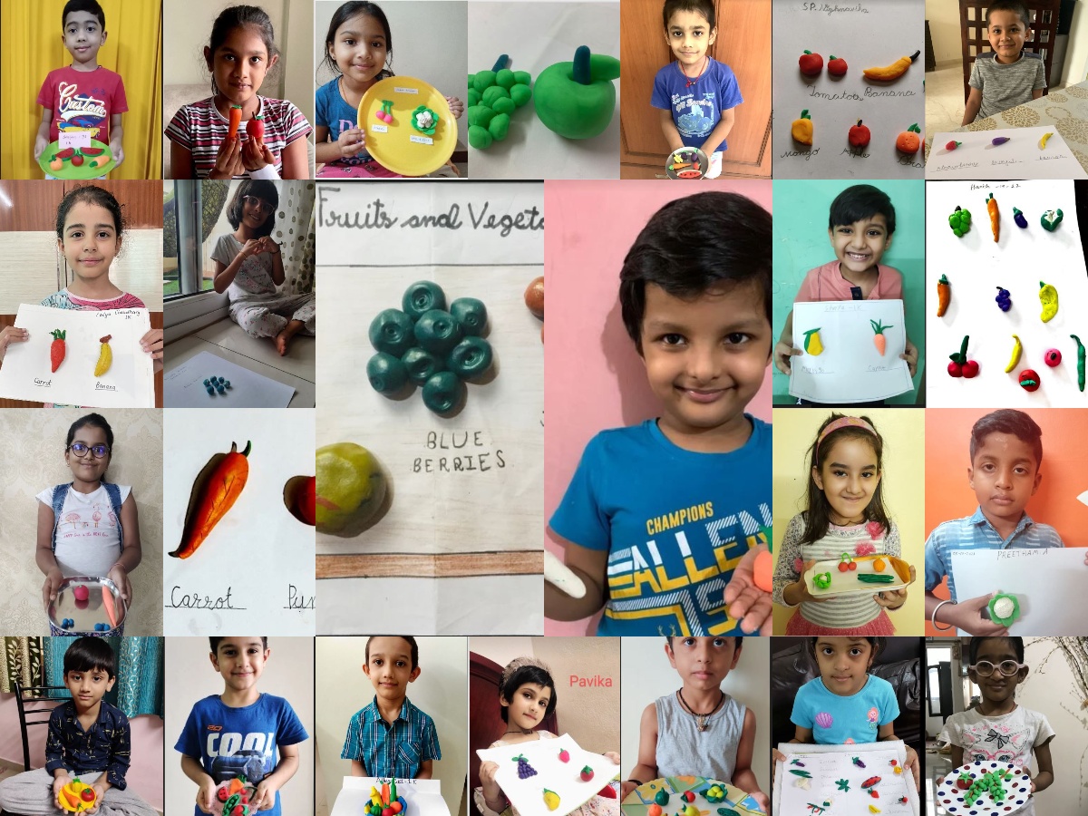 Students presented clay models on the topic fruits or vegetables.