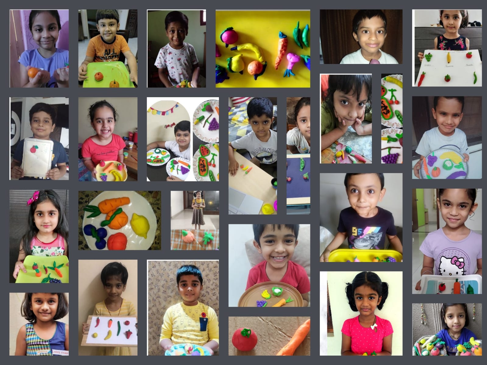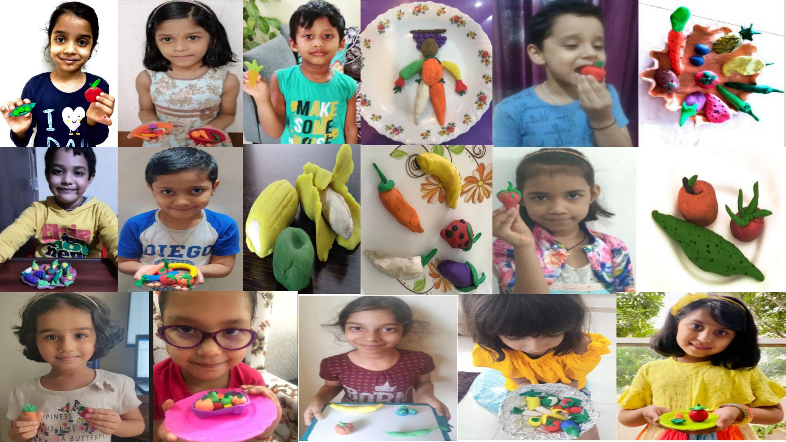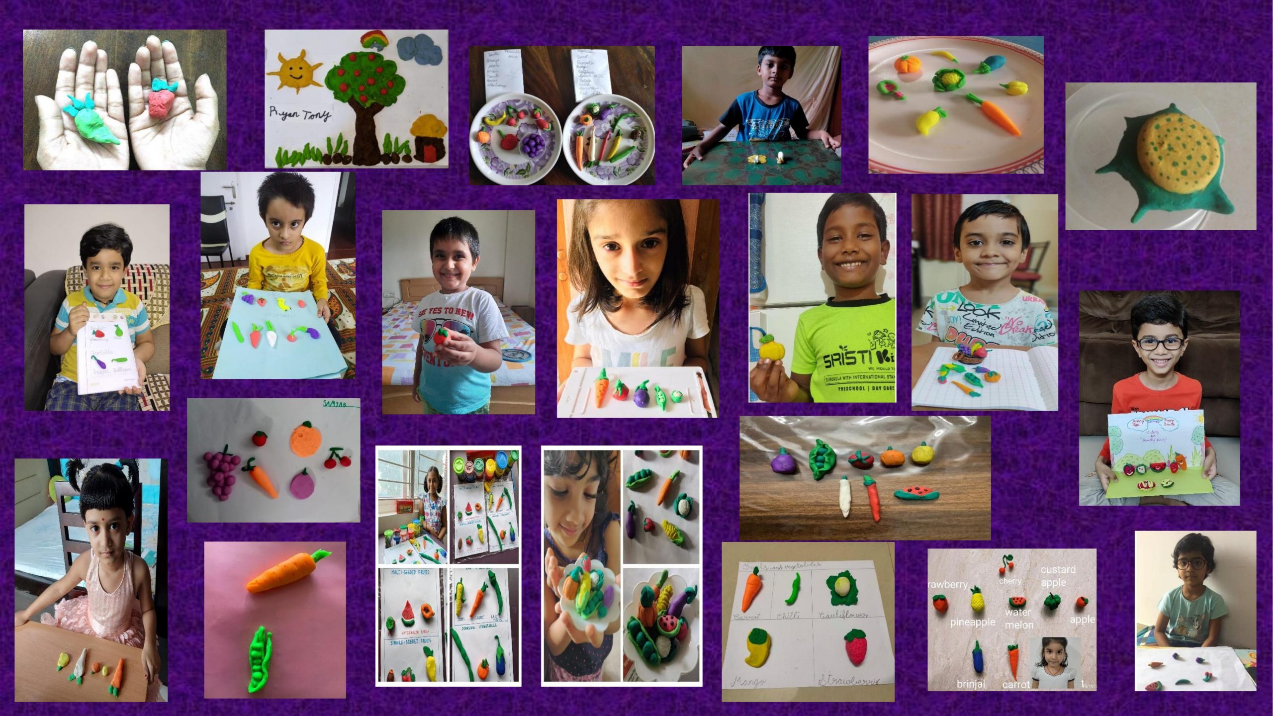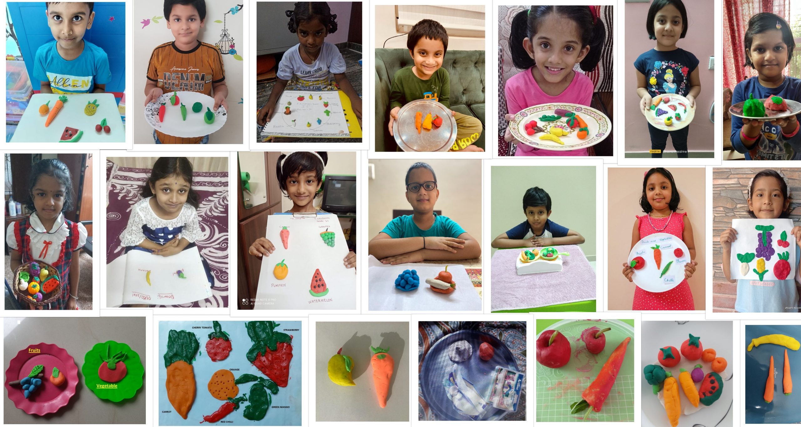 Students presented clay models on the topic fruits or vegetables.