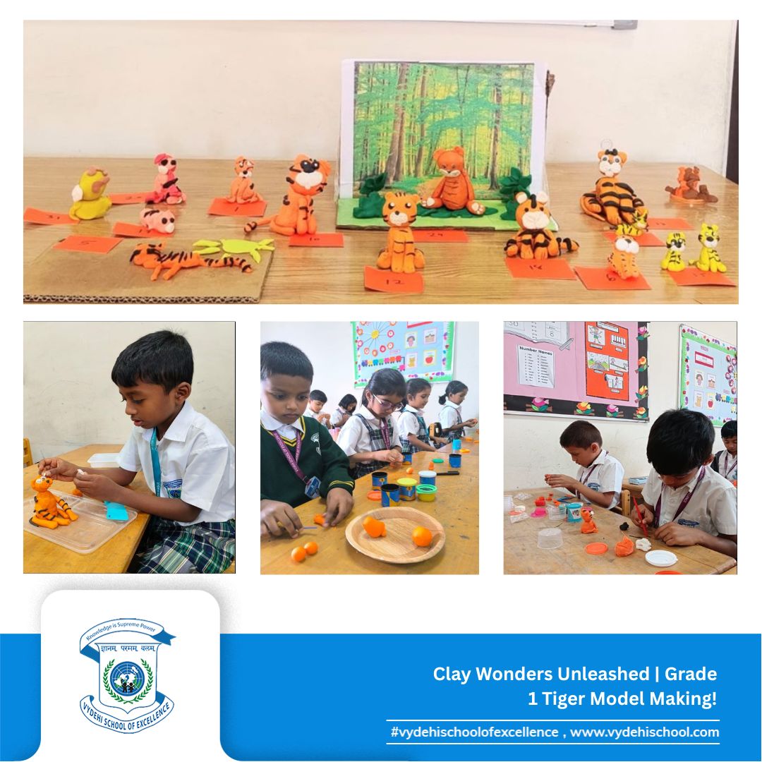 To mark International Tiger Day, our Grade 1 Vydehians turned little sculptors at the CCA – “Clay Wonders: Tiger Model Making” activity. 🌍💚 With colourful play-dough in hand, the young artists crafted adorable tiger models, blending creativity, imagination, and awareness about wildlife conservation. 🐅