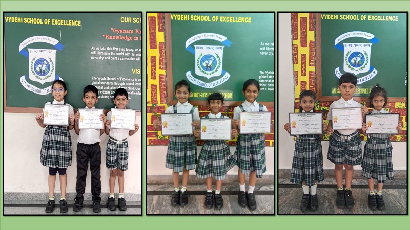 Vydehi School of Excellence conducted a CCA Storytelling Competition for grade 2 students on February 13, 2024. The competition brought together a countless number of tales, each woven with passion and creativity. After much anticipation and deliberation, we have chosen our best storytellers, placing them in the shining spotlight. We are thrilled to present the winners who captivated our hearts and minds with their exceptional storytelling skills. Our Proud Winners are:
