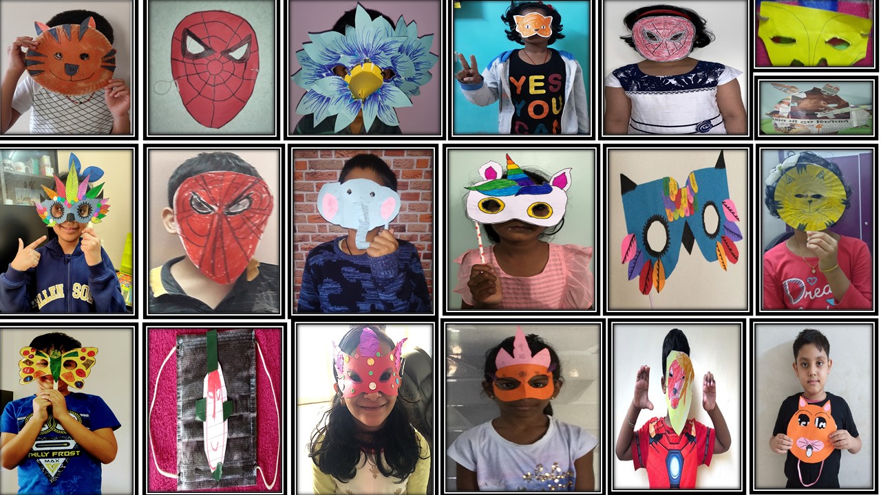 A variety of paper and plastic plate masks, headbands, eye masks etc. were made by the children and appreciated by one and all.The happiness of ‘learning by doing’ was pretty evident on the faces of the students. It was an enriching experience both for the learners as well as for the educators. Each of the masks prepared by them was a great treat to the eyes. This activity witnessed an enthusiastic participation of all the students.