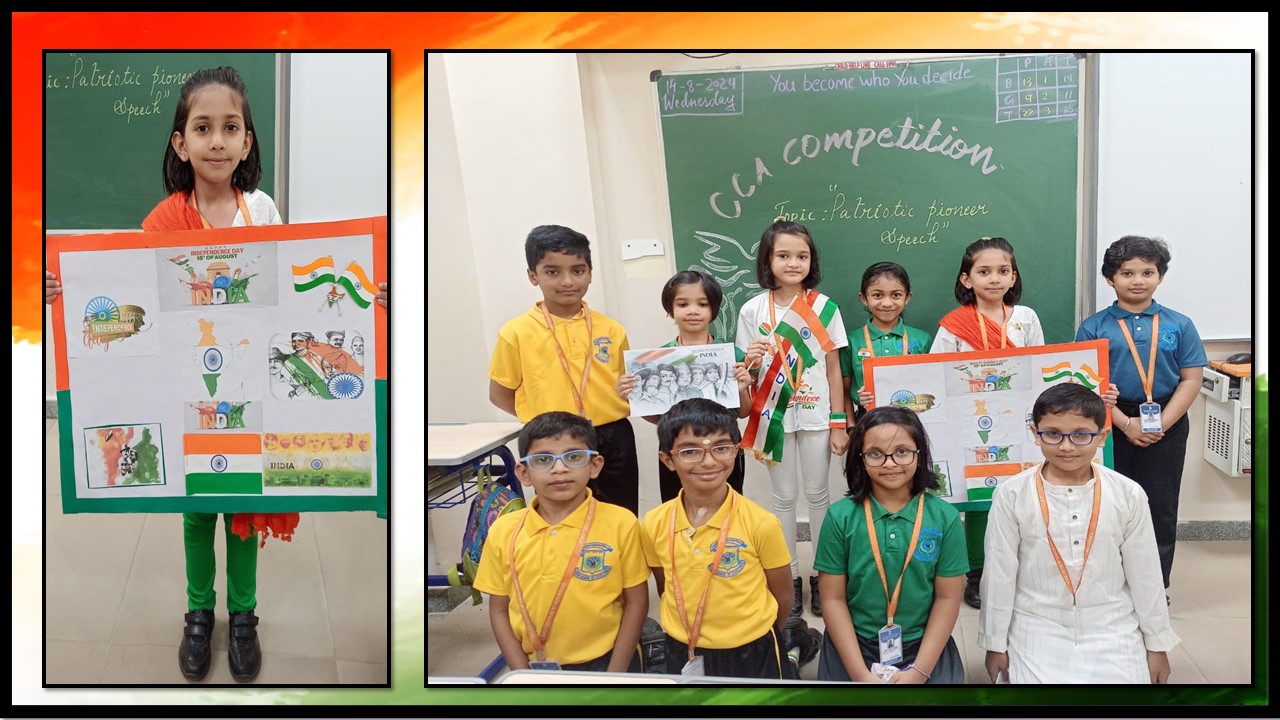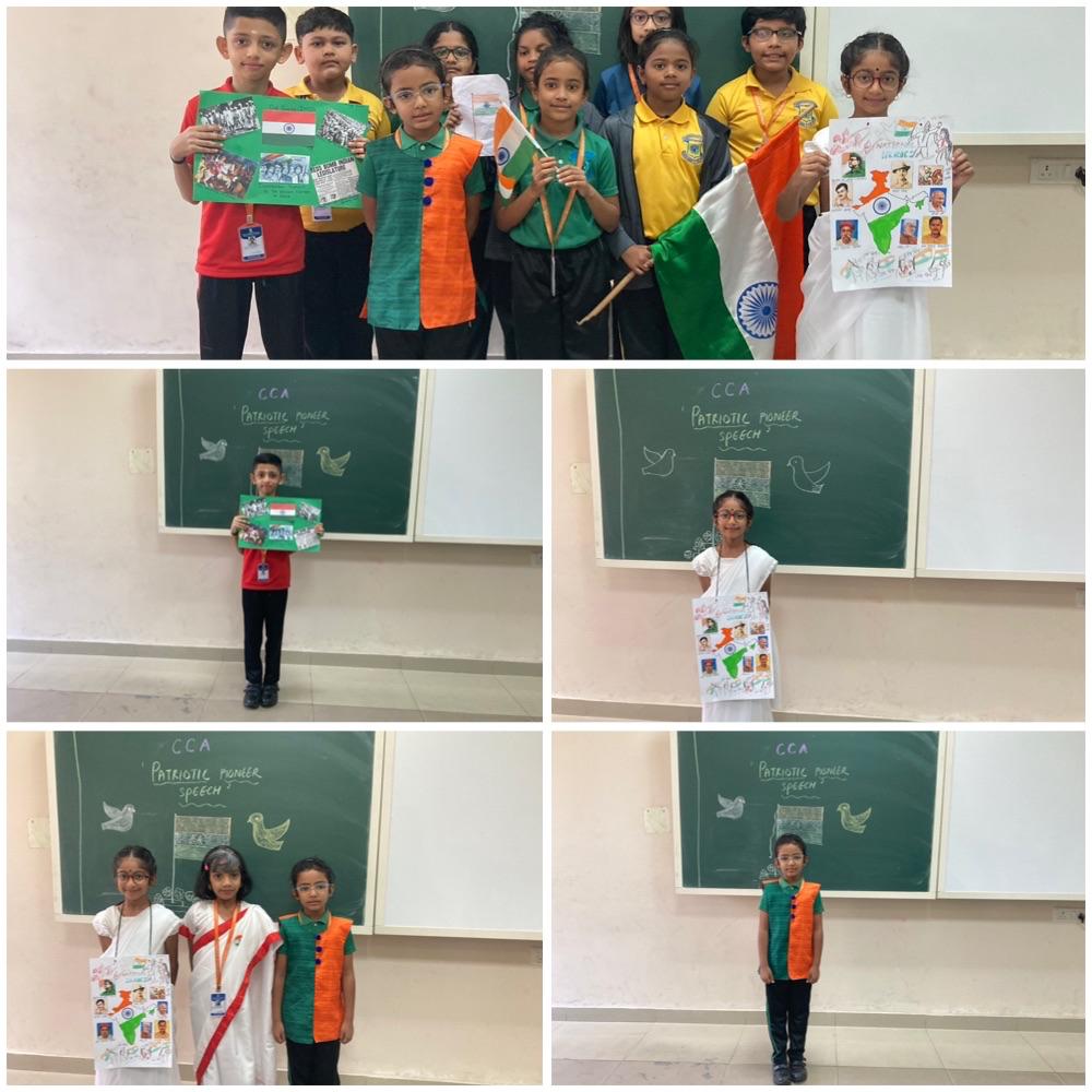 Pioneer Speech” for the students of Grade 3. The event aimed to commemorate India’s 78th Independence Day by encouraging young students to learn and salute the valor of our freedom fighters. The young participants, filled with enthusiasm and pride, took turns to speak about gallant national heroes such as Mahatma Gandhi, Bhagat Singh, Rani Lakshmibai, and Subhas Chandra Bose. Their speeches were not only well-researched but also delivered with great passion and clarity.