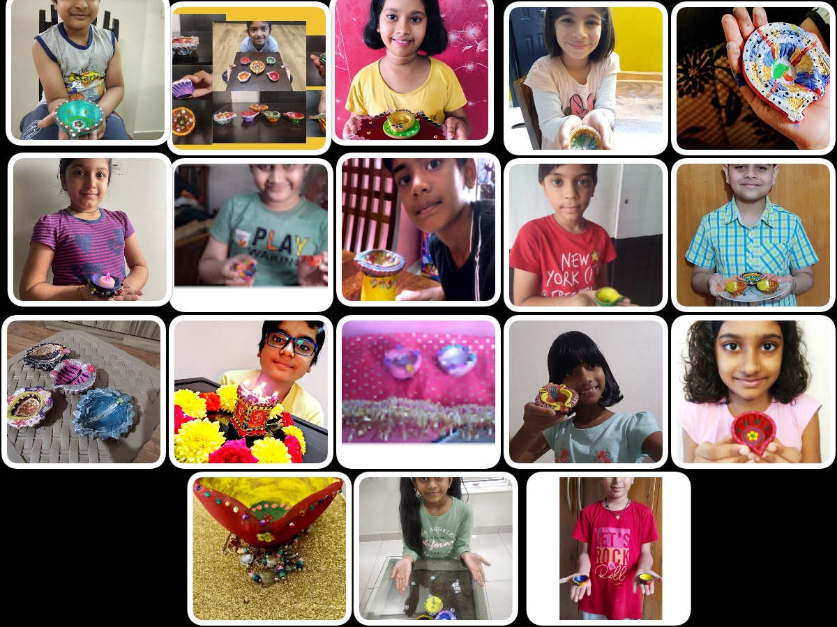 Our children created mesmerizing colour combinations and drew myriad patterns on the earthen Diyas and made it more enticing and attractive. The concepts and ideas brought out by the kids are commendable and admirable too. It was a great learning experience and helped to foster the creative talents of our students who were the reasons for making the event a grand success.