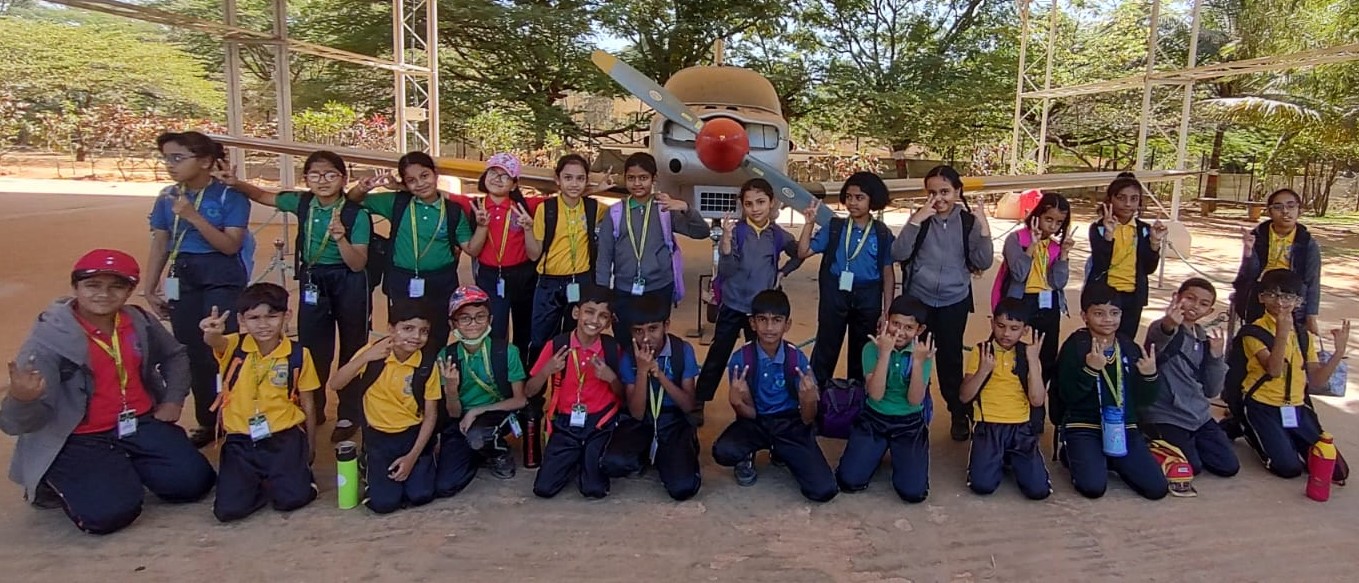 Education beyond the classroom walls is the best way to enrich the knowledge of young students, and field trips are the best way to do so. Vydehi School of Excellence takes education to new heights with regular field trips. The school recently organized a field trip for Grade 3 students to the HAL Aerospace Museum. HAL, Hindustan Aeronautics Limited, was a virtual wonderland for the students and history buffs, providing an unforgettable experience that was both entertaining and enlightening. The visit was full of excitement as the students saw real aircraft, including fighter planes and helicopters, which they had previously only made with paper. The museum displays a varied collection of aircraft models and also houses a reference library, aircraft simulators, a mock air traffic control tower, and an aeromodelling club. Students explored the adventurous world of aeronautics and inspired with the ambition to soar high up into the sky.