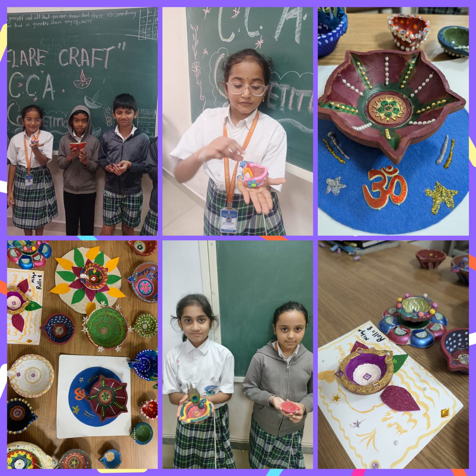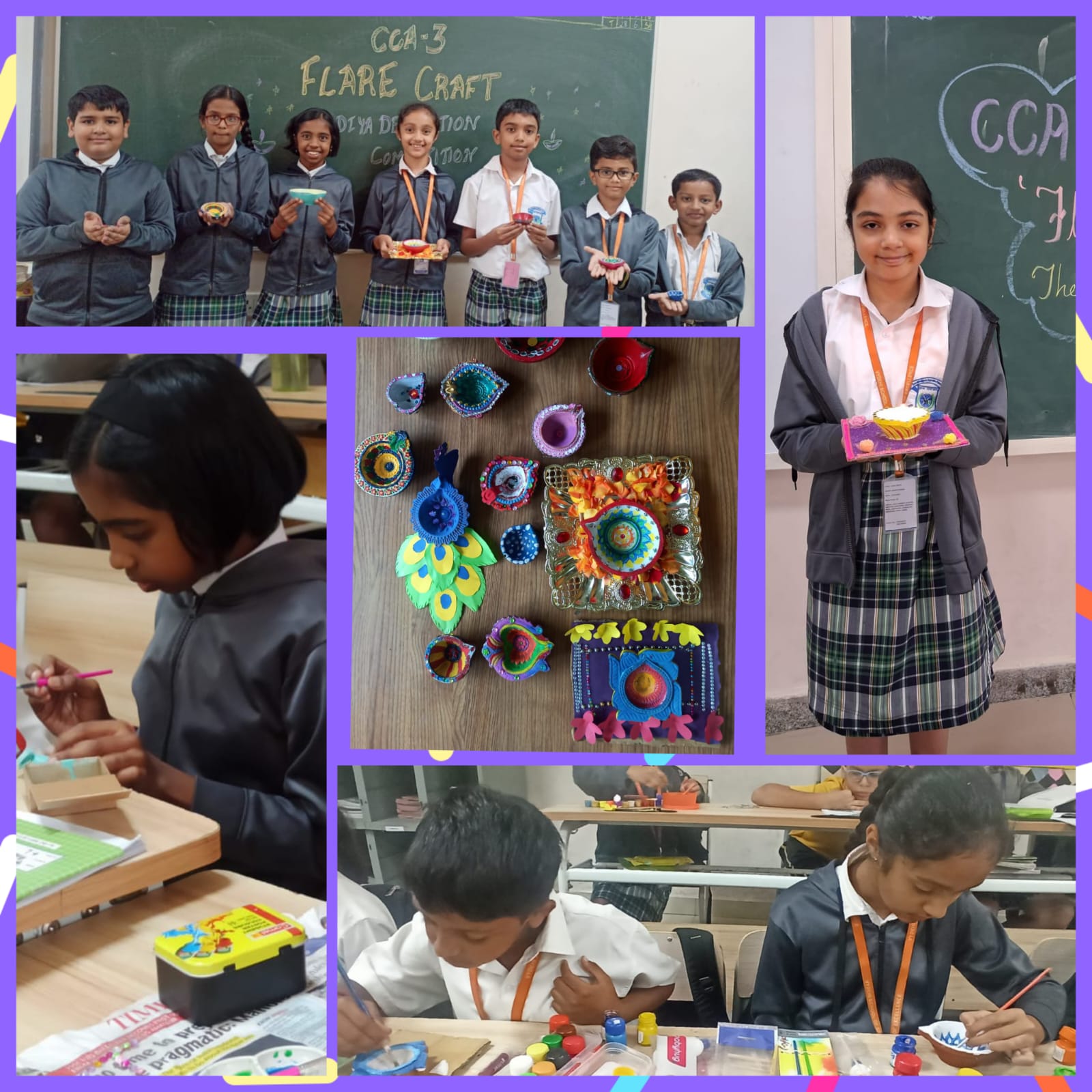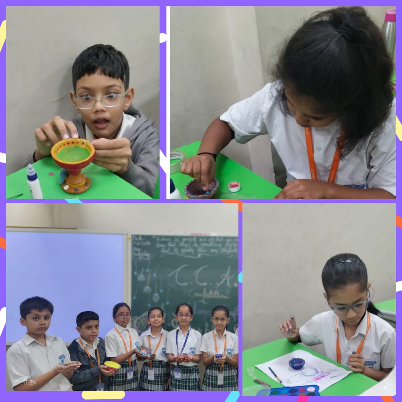 On 17th October 2024, Vydehi School of Excellence organized a creative and heartfelt Co-Curricular Activity (CCA) competition for Grade 4 students, titled “FLARE CRAFT.” The theme of the competition was on designing, painting, and decorating clay lamps. This hands-on activity not only sparked creativity but also allowed participants to explore traditional art forms, blending cultural significance with modern artistic expressions.