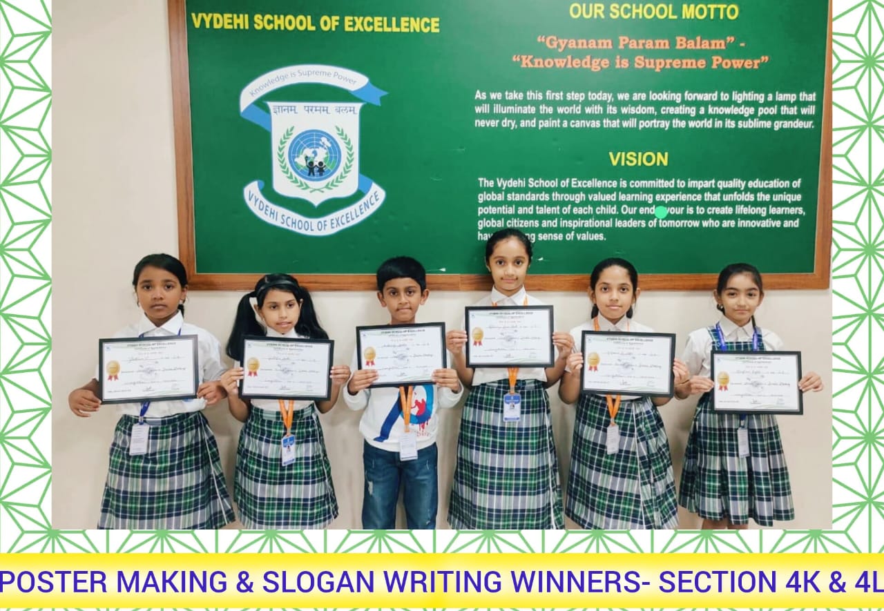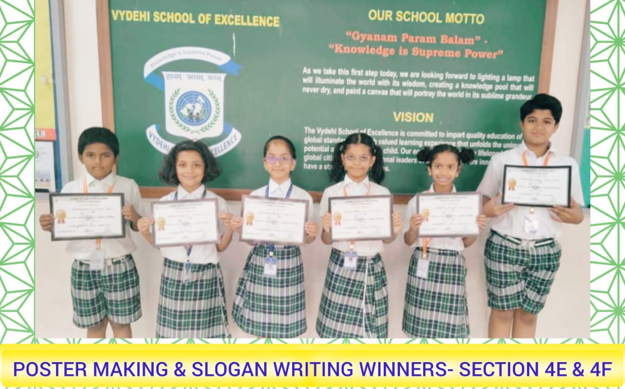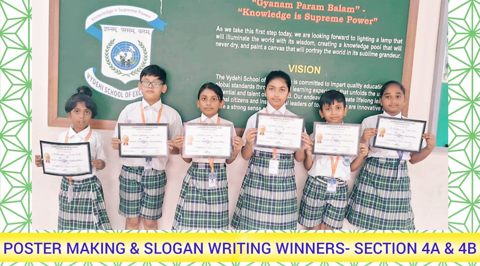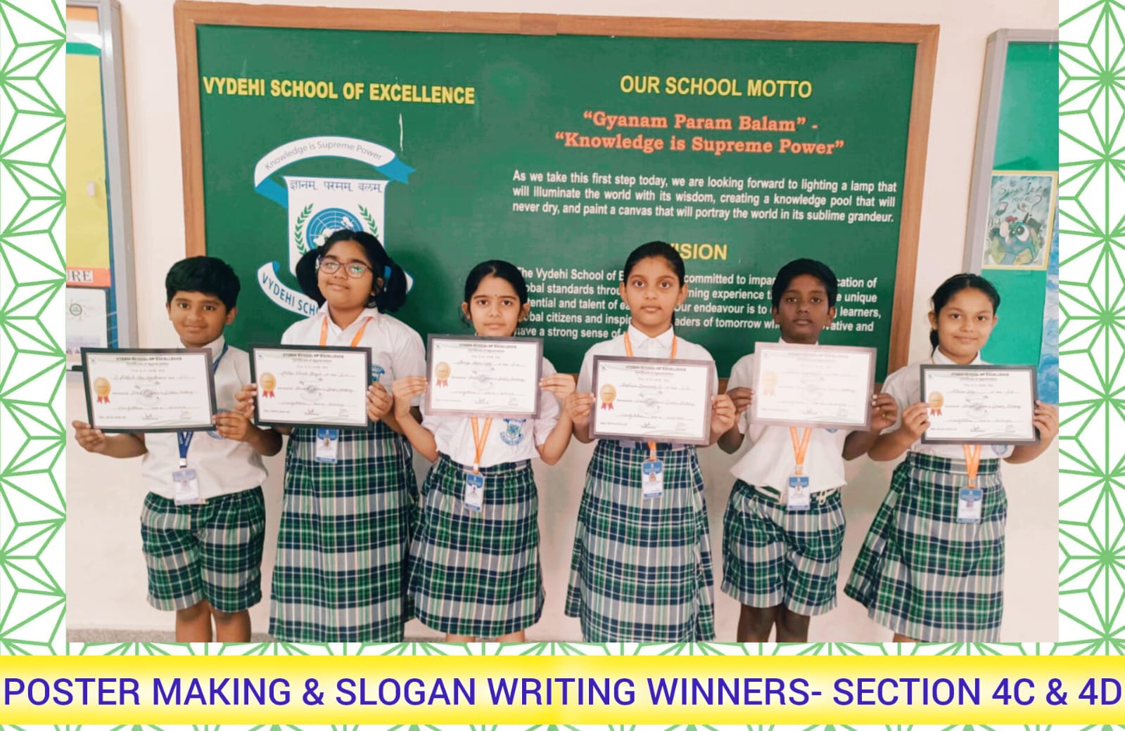 Grade 4 CCA Poster Making and Slogan Writing Competition took place on the 18th of June 2024 at Vydehi School of Excellence. The students enthusiastically participated, showcasing their artistic and literary talents under the theme “Nurture the Nature.” Each stroke of colour and carefully curated slogan emphasized the importance of environmental stewardship. The event was a resounding success, with each participant showcasing their unique perspective on the beauty and importance of nature in our lives. The vibrant colours and thoughtful slogans served as a reminder for all of us to make a conscious effort to protect and nurture our environment for future generations to enjoy.