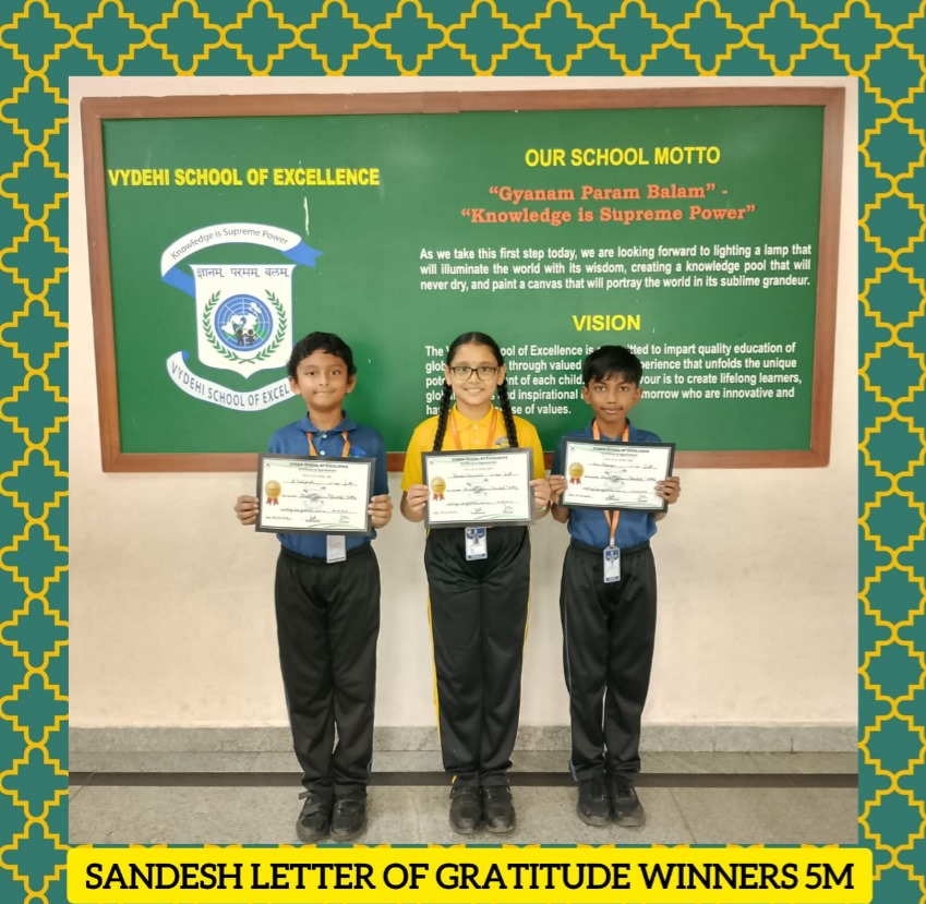 appreciation from the Vydehi School of Excellence students. This initiative provided the students