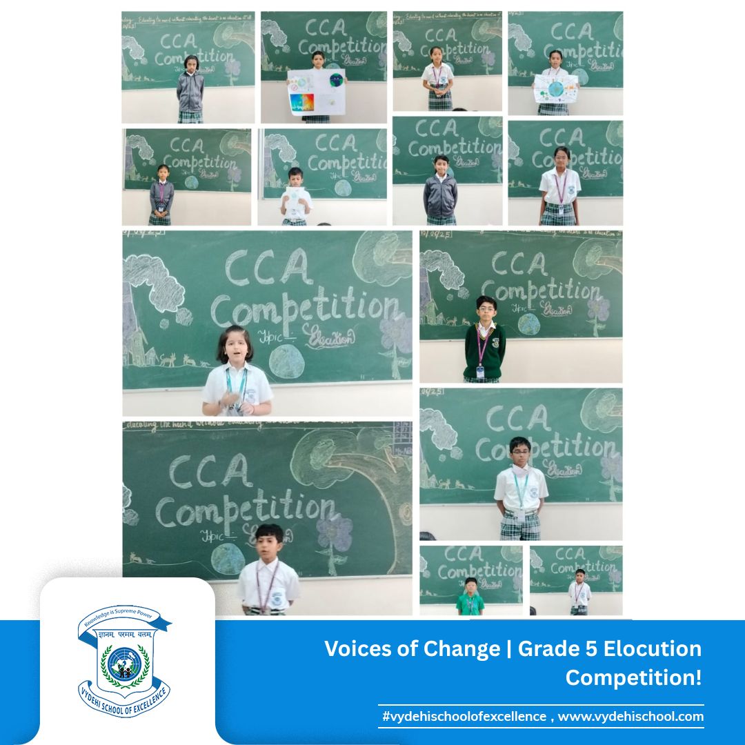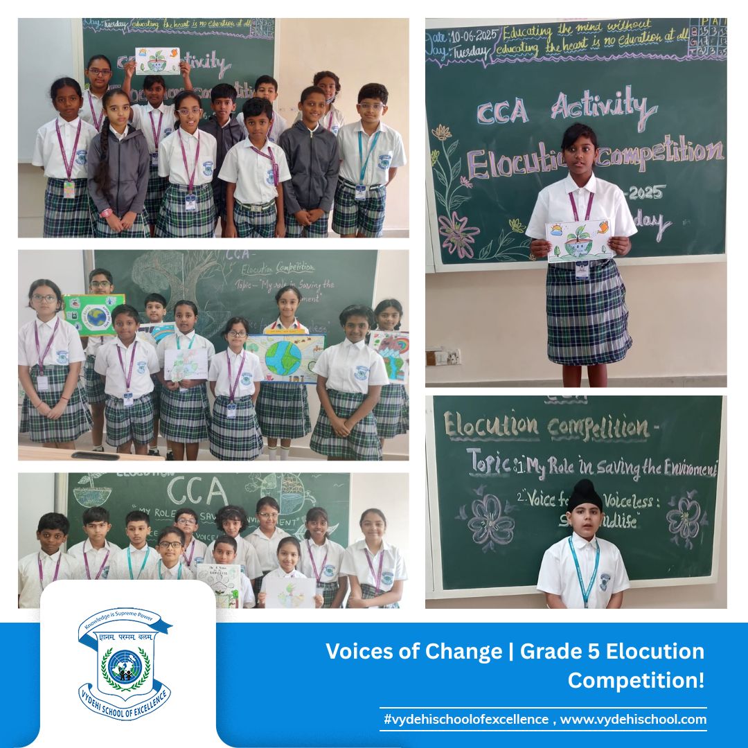 On June 10, 2025, Vydehi School of Excellence hosted the Grade 5 Elocution Competition under the CCA banner, a vibrant platform where young minds spoke with passion, purpose, and power.