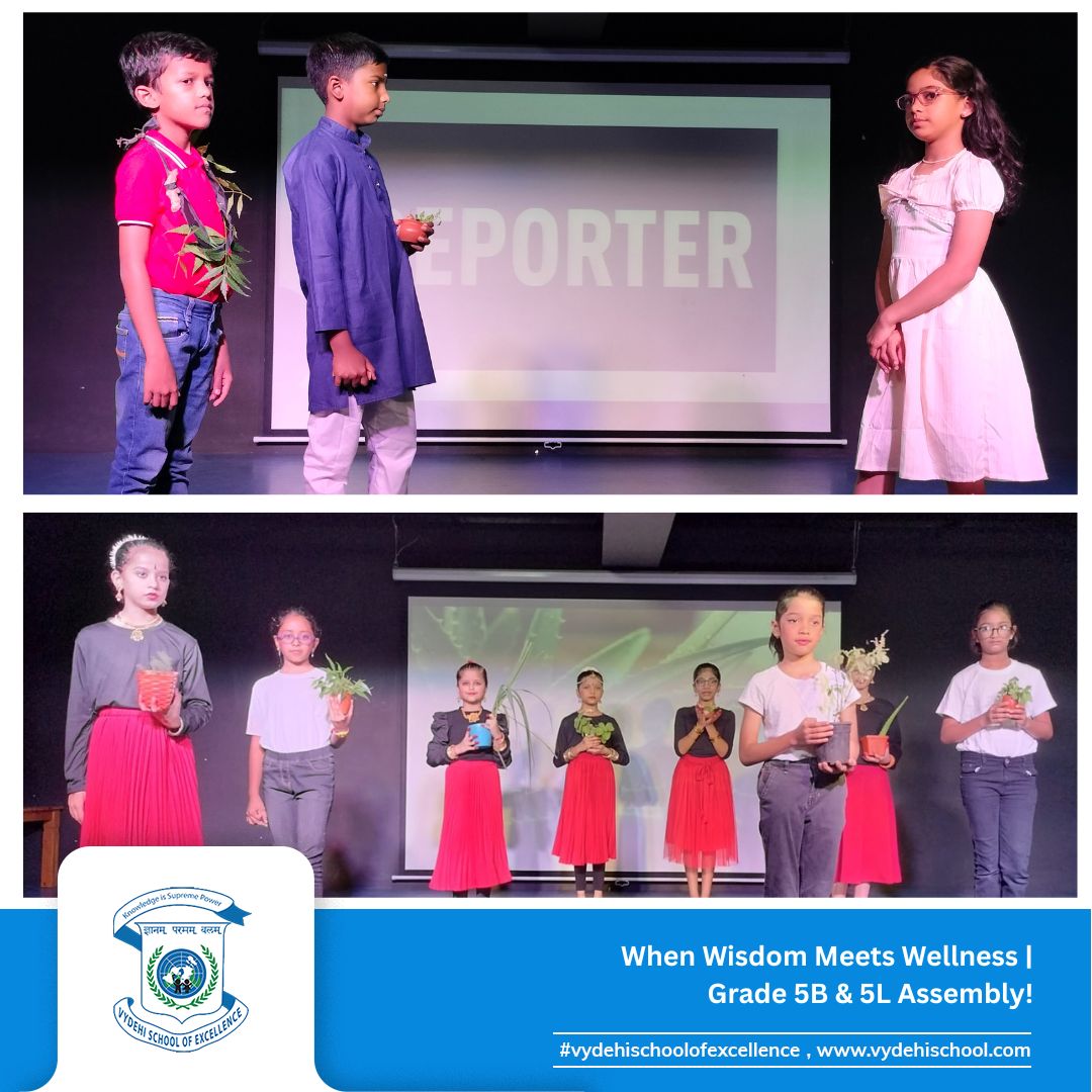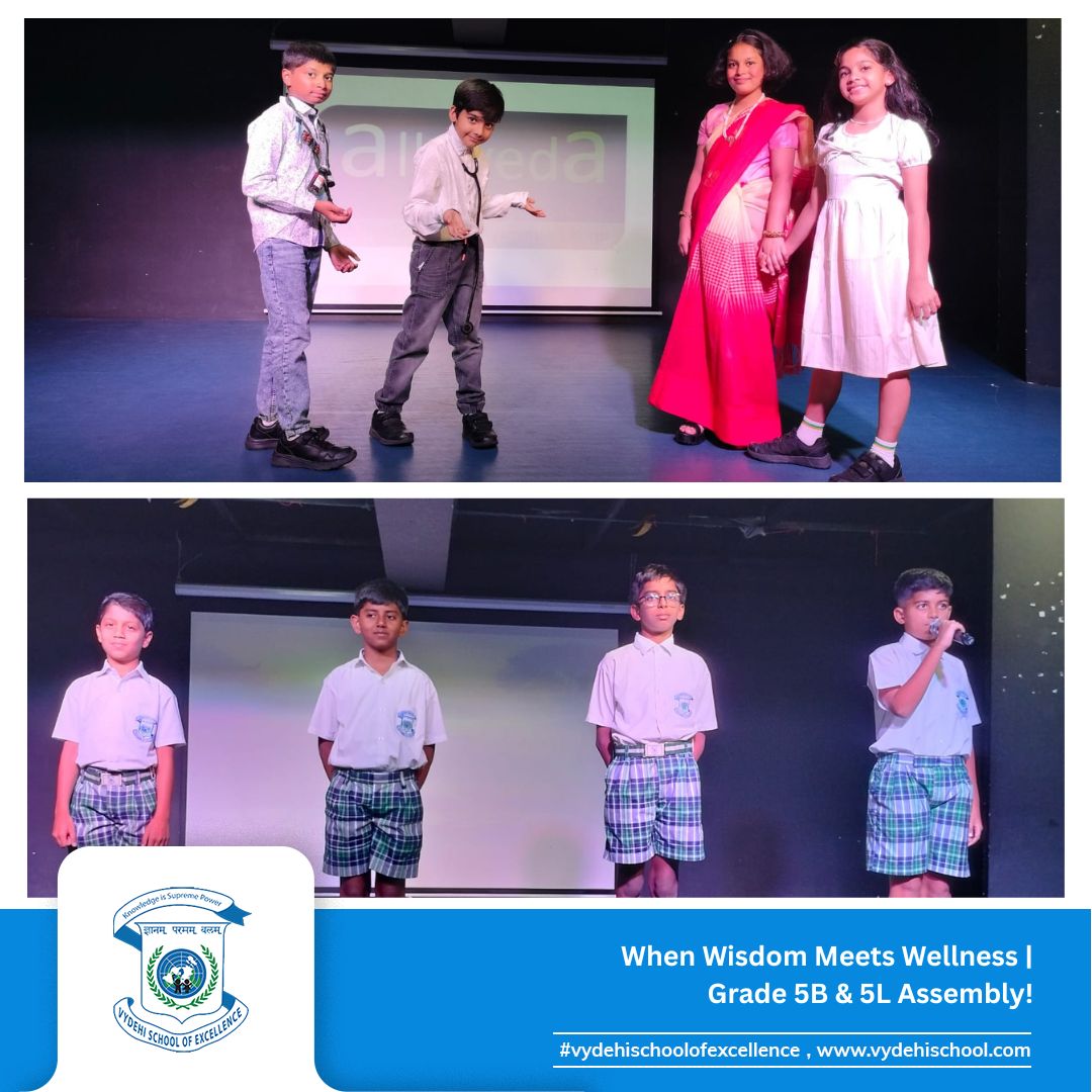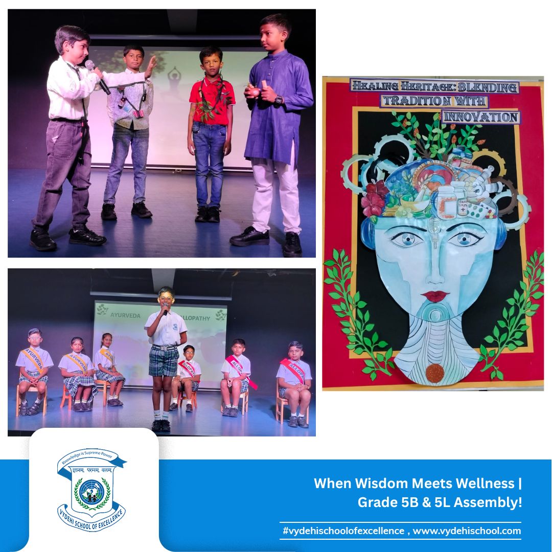On June 24, 2025, Vydehi School of Excellence witnessed a beautiful confluence of ancient wisdom and modern innovation during the Special Assembly by Grade 5B and 5L titled “Healing Heritage: Blending Tradition with Innovation.”