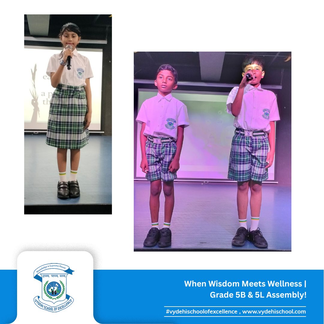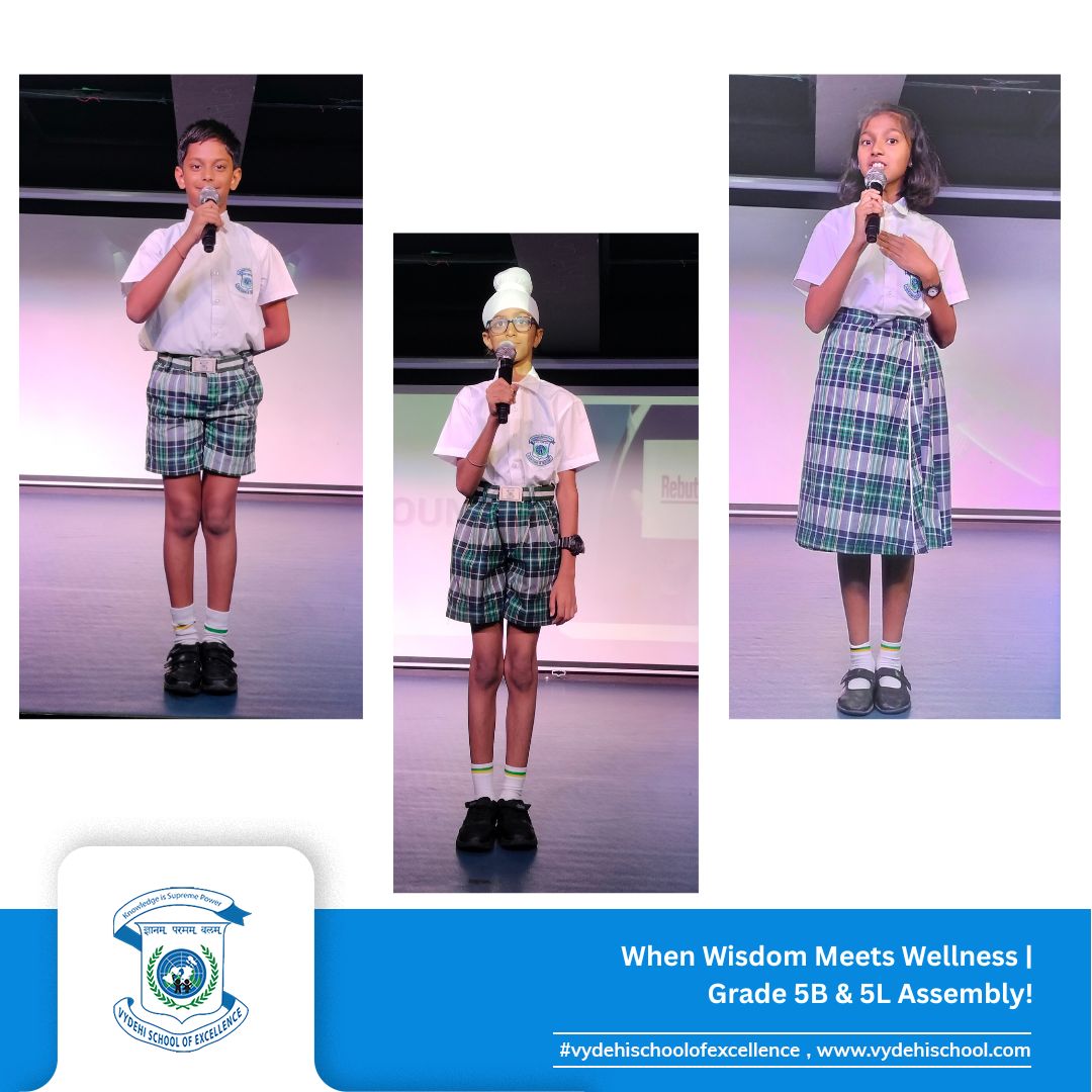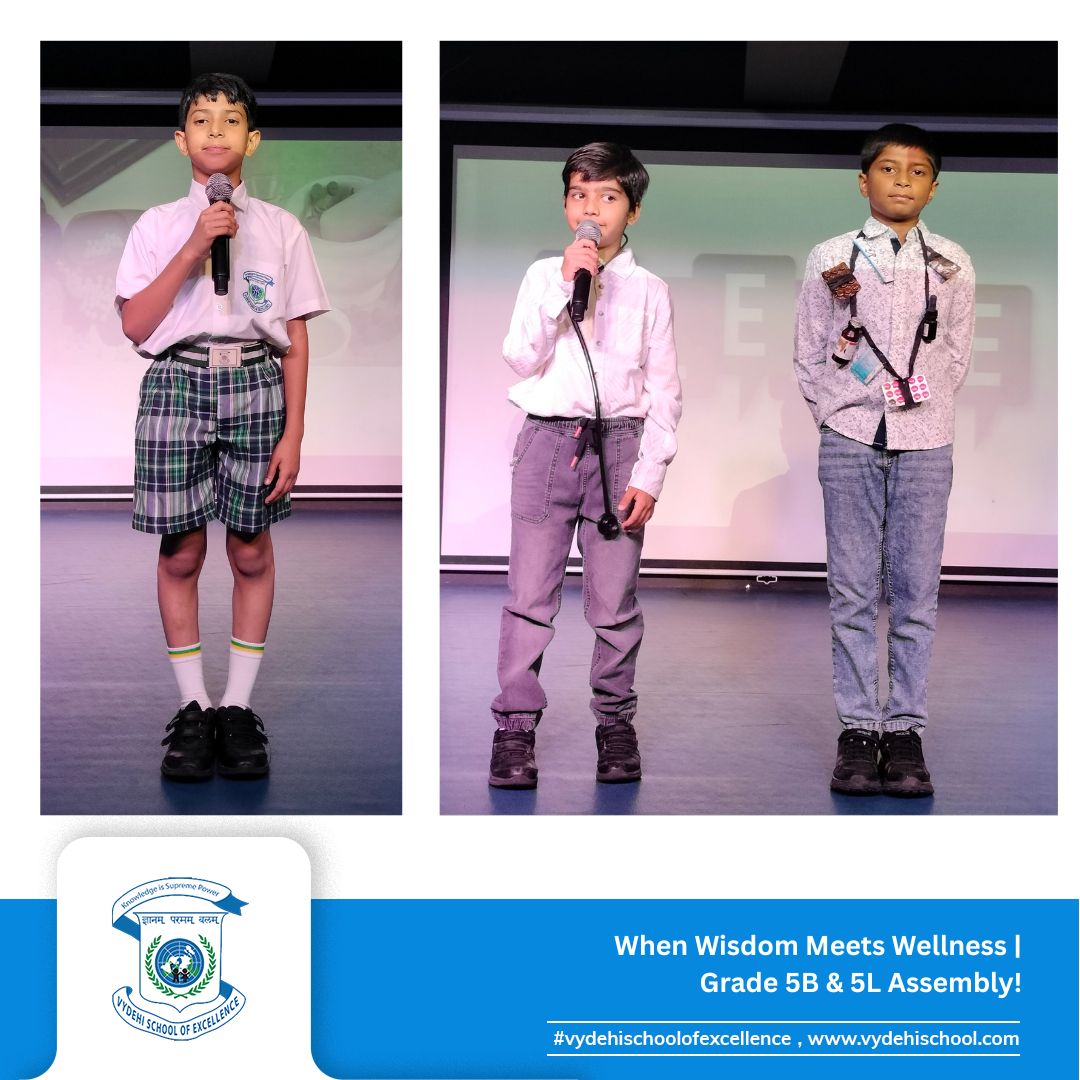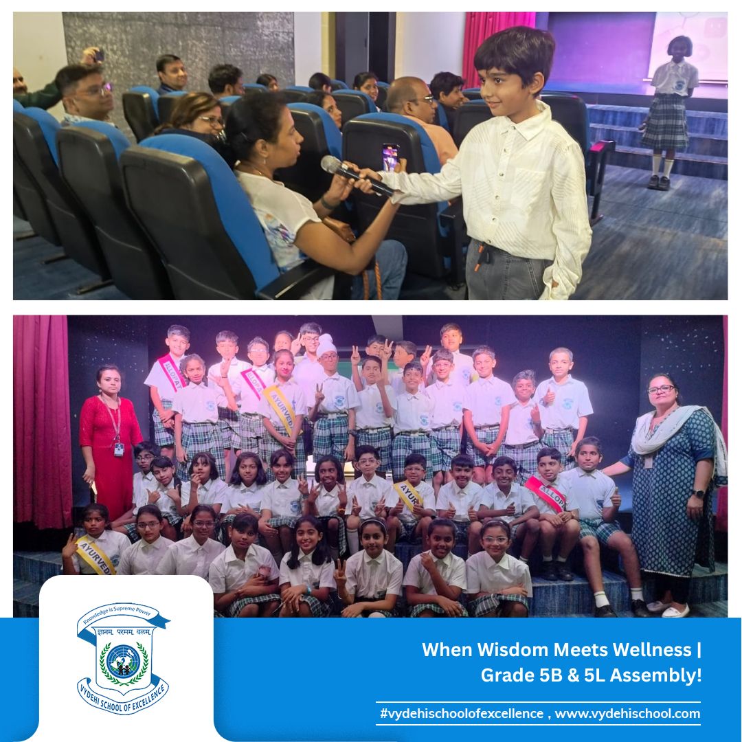 On June 24, 2025, Vydehi School of Excellence witnessed a beautiful confluence of ancient wisdom and modern innovation during the Special Assembly by Grade 5B and 5L titled “Healing Heritage: Blending Tradition with Innovation.”