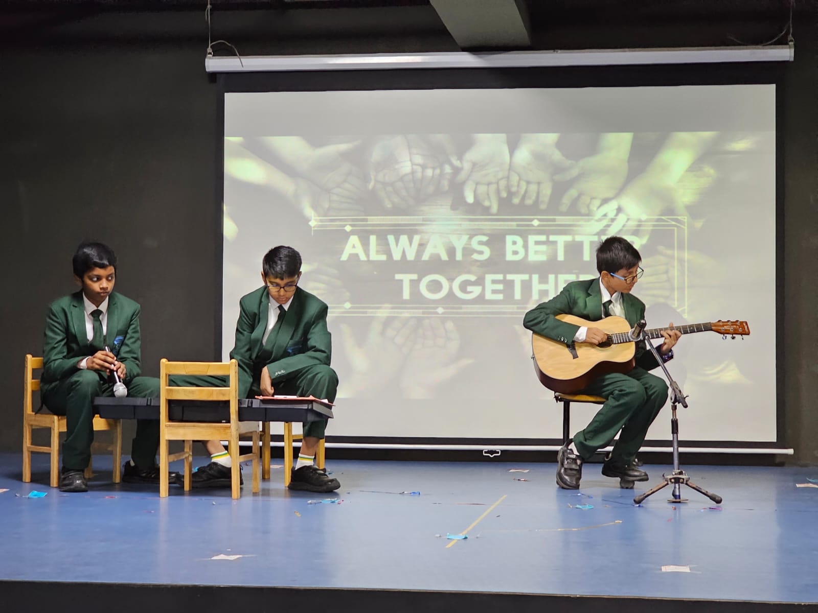 Through prayer, pledges, thoughtful reflections, news stories, music, drama, and dance, the students of class 6A & B of the Vydehi School of Excellence celebrated the power of unity in all its forms. Starting with a prayer and culminating with the national anthem the featured stories on stage could make even Mother Teresa smile, as it showcased communities, nations, and individuals coming together for a common cause. It was a testament to the fact that unity knows no boundaries. The audience was left in awe of the strength that arises from unity. It invoked a reminder that when we come together, our strength is magnified, and we can overcome any obstacle that stands in our way. The stage was fuming with zeal and energy reminding us that when we come together with a shared purpose and a sense of community, we can overcome challenges, achieve great things, and build a better world.