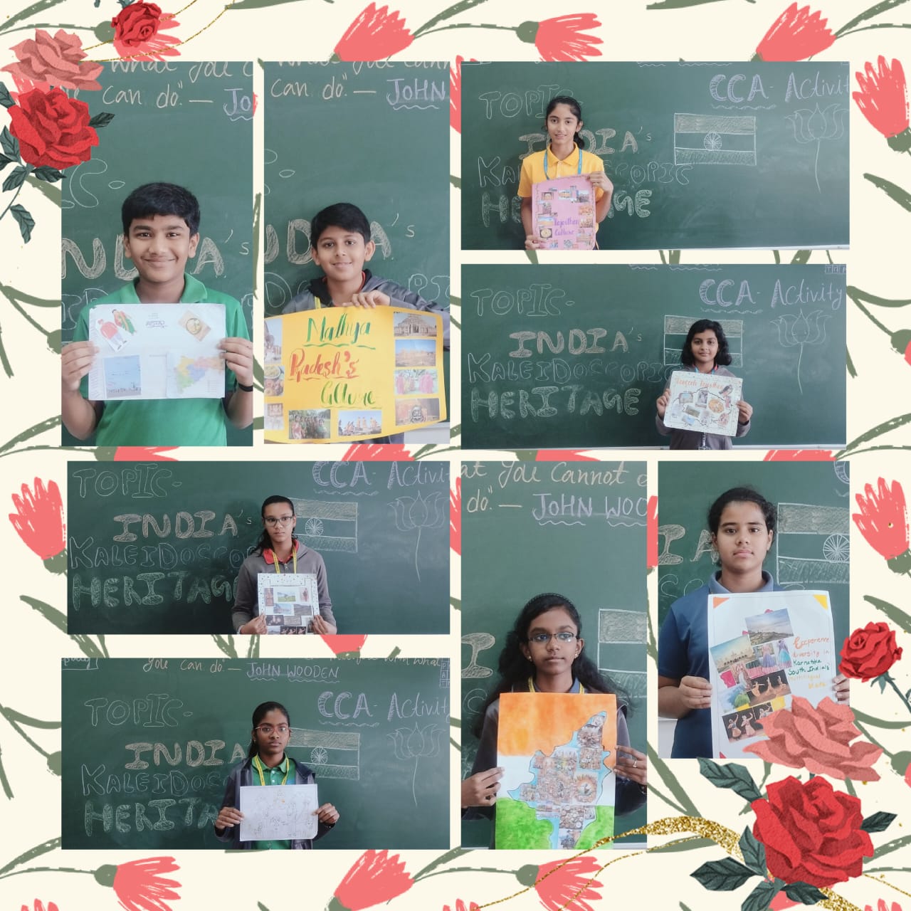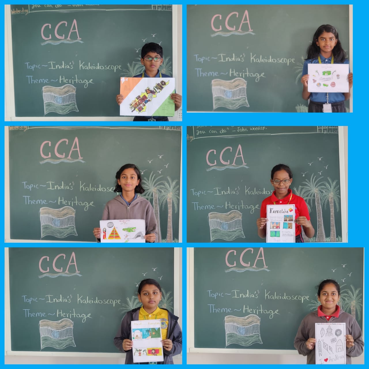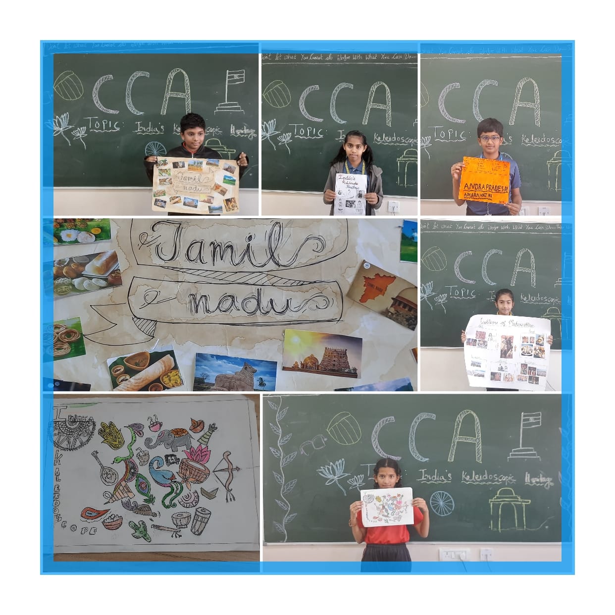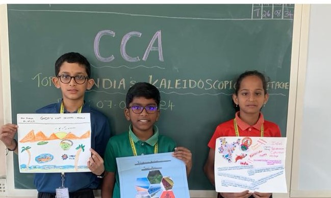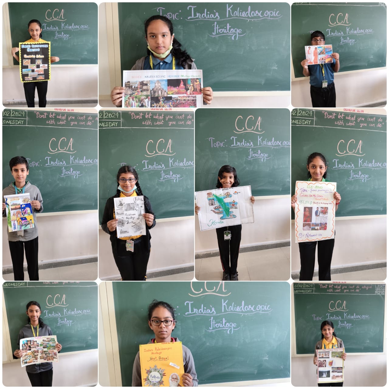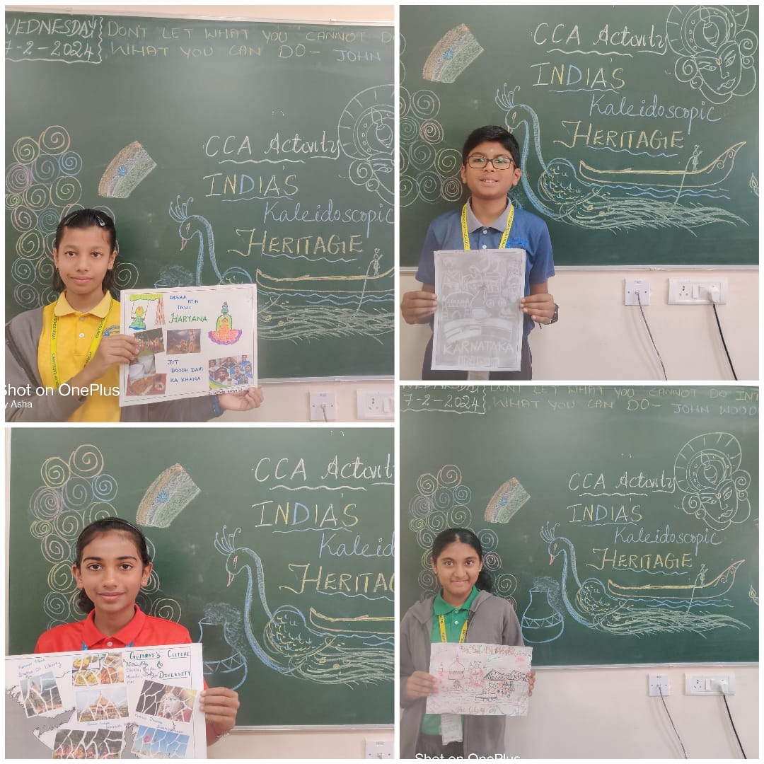 Keeping this thought in mind, and to create awareness among little builders of nation, Vydehi School had organized for a CCA activity for the students of Grade 6, on the topic India’s Kaleidoscopic Heritage in which the students had to create a collage on cultural diversity, that contribute pieces which represents their state’s cultural background.