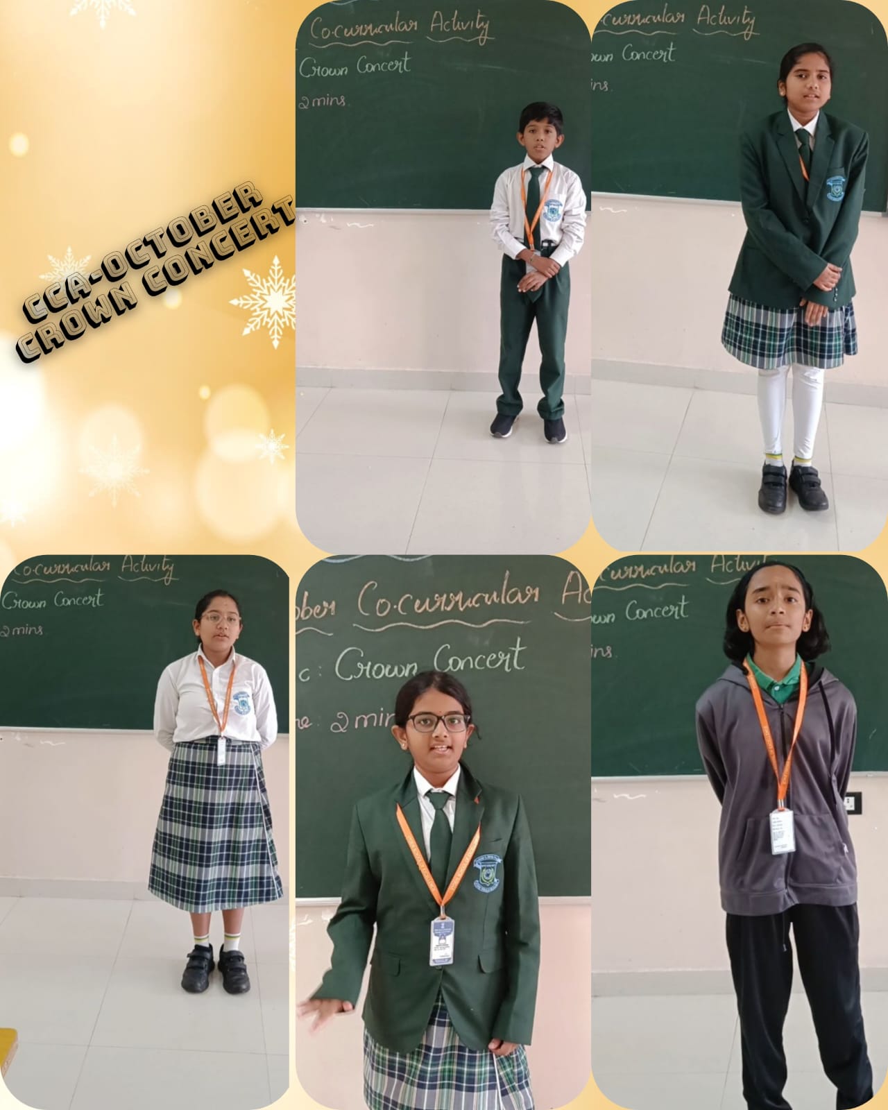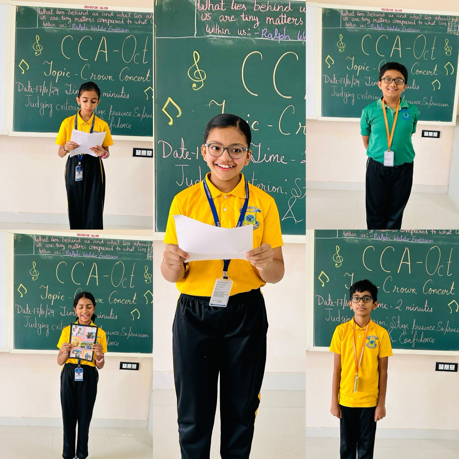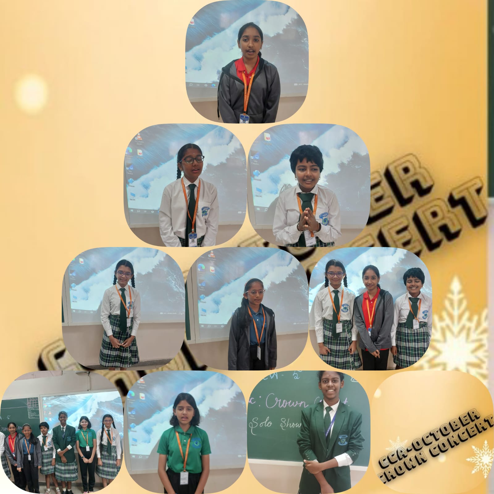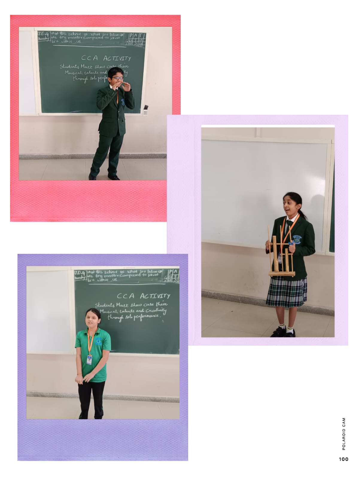 In an exciting display of creativity and talent, Grade 6 students at Vydehi School of Excellence participated in CCA Activity 5, where each student delivered a solo performance, showcasing their musical abilities. The event saw participants perform original songs, accompanied by musical instruments, singing, and dancing, emphasizing both their creativity and skill.