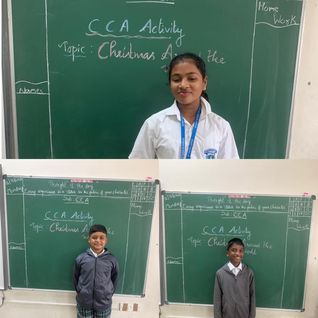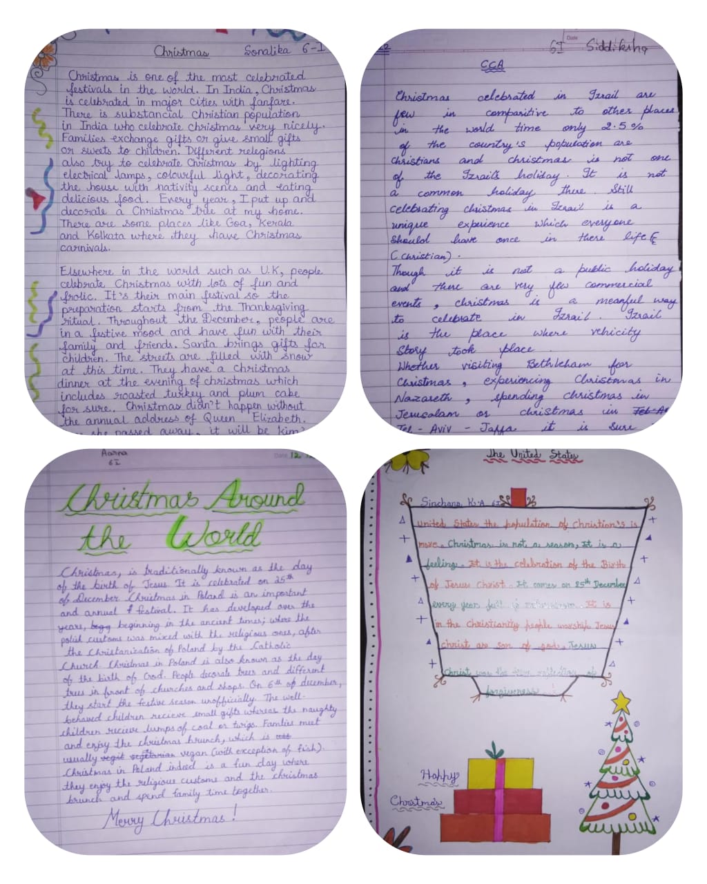 To understand the importance of Christmas Day, we @Vydehi School of Excellence conducted the CCA for the month of December on the topic – Paragraph writing on “Christmas Celebration all around the world”. All the students happily participated in this activity.