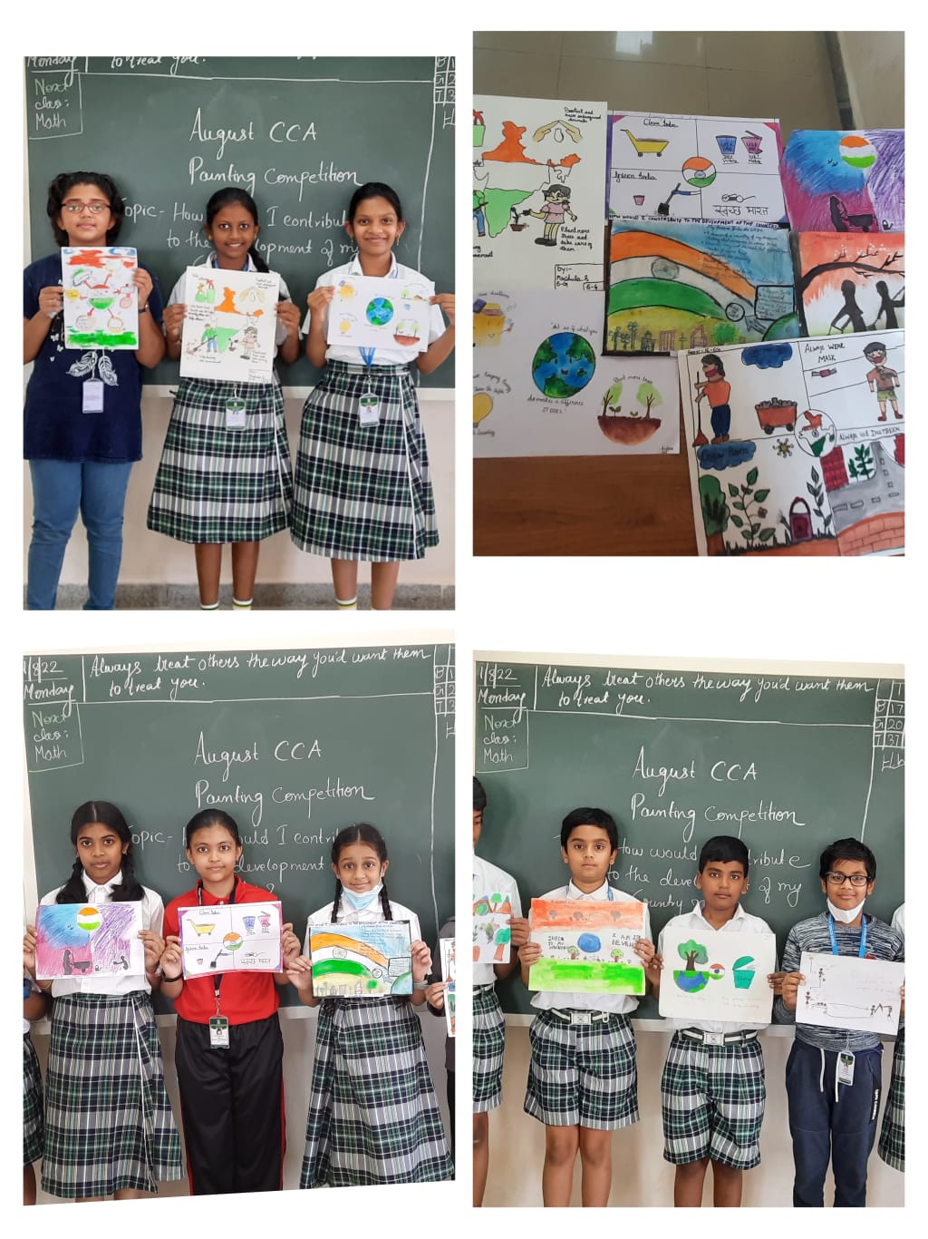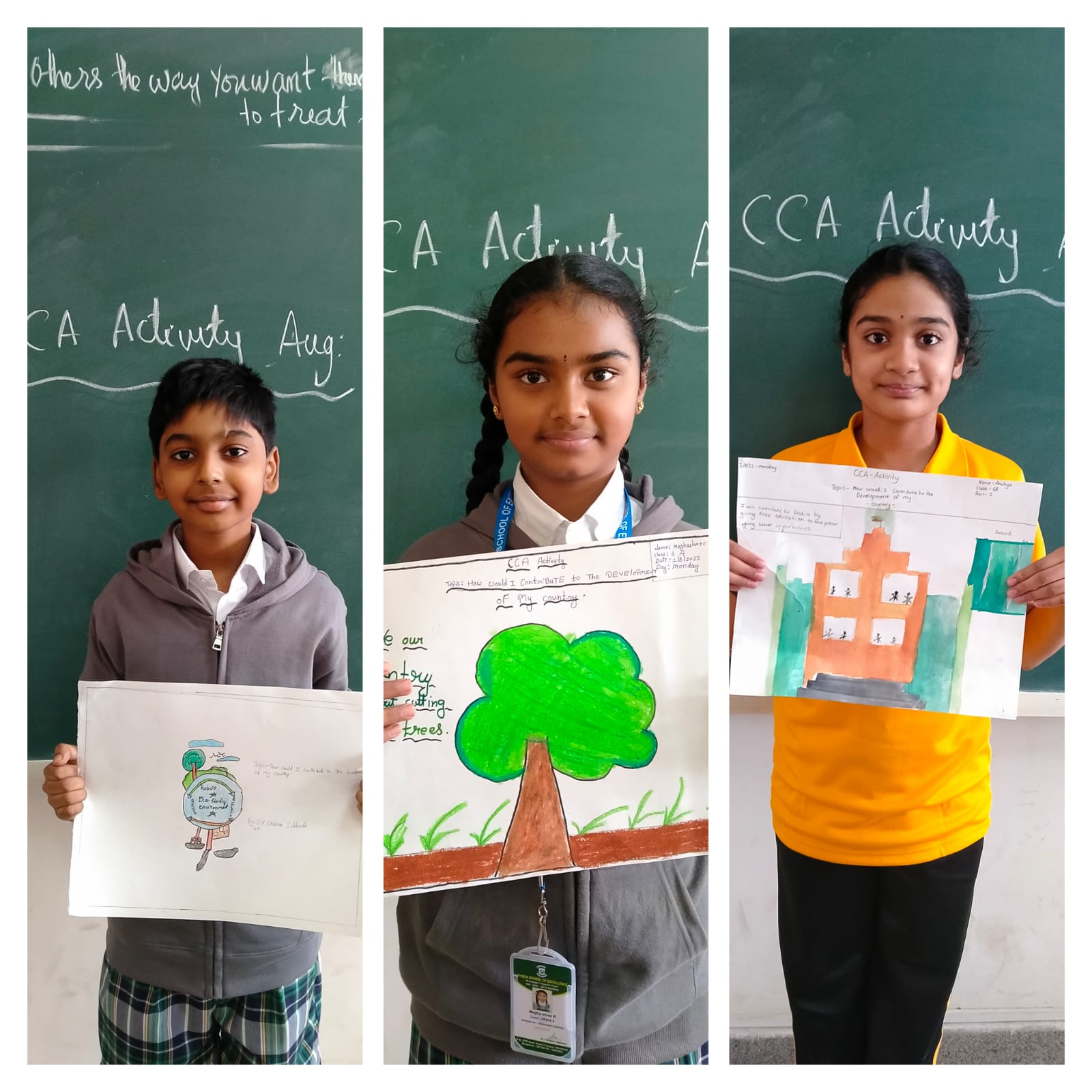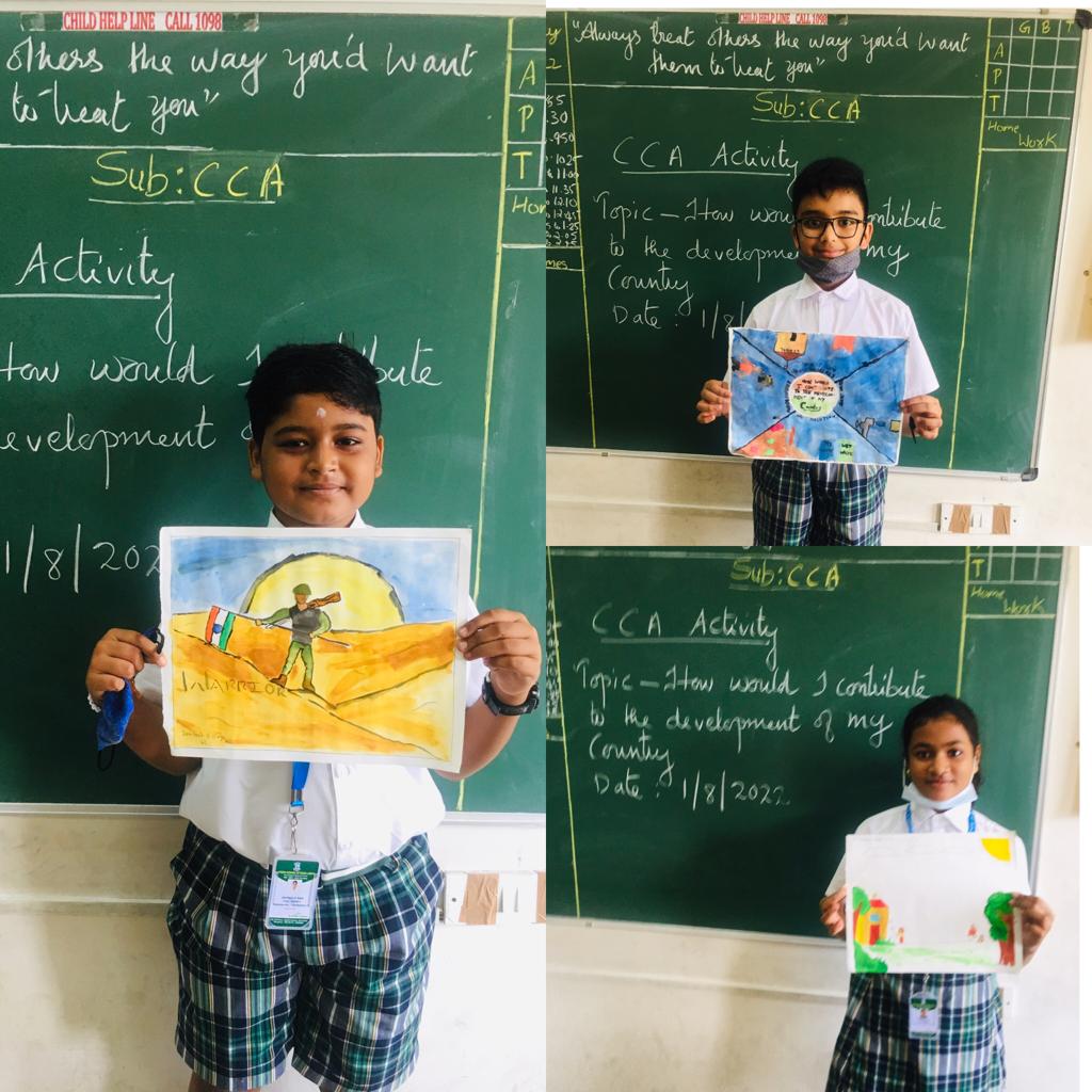 It was really fascinating to see the twinkling little starts of Vydehi School of Excellence, participating in the competition-Painting Competition (How would I contribute to the development of my country? -Individual Activityheld on 1st August 2022 with enthusiasm and coming out with so many new ideas. So, it was very tough for a teacher to select the victor from huge pool of entries we received. However, we have got our winners for today’s topic.