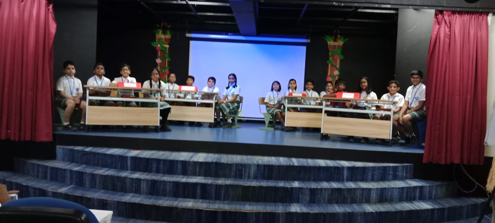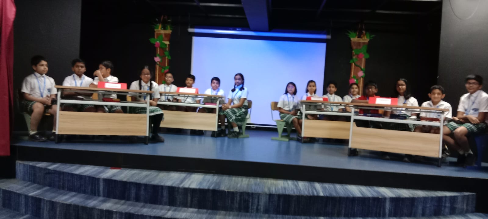The venue of this competition was our school auditorium with our chief guest, Head Mistress-Middle School. The elected children of grade 6 were divided into four houses and the competition begins with the welcome speech followed by reading the rules of the competition. The quiz competition comprises of four rounds, general round, rapid fire round, buzzer round and picture identification round.
