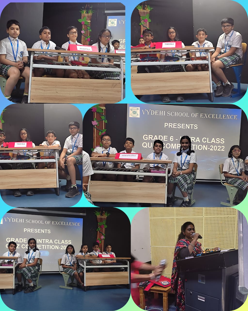 To among the student the spirit and attitude of healthy competition, Vydehi School of Excellence organized `The Intra Class Quiz Competition’ for grade VI on 18.10.2022.