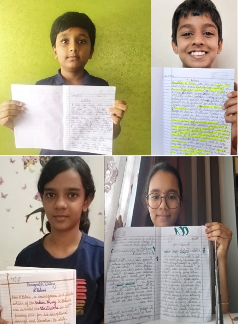 Students participated in a Paragraph Writing Competition on the Theme K PALANI (GALLANTRY AWARD WINNER) motivates me to…….. The students enthusiastically took part in the competition and projected their innovative and creative thoughts.