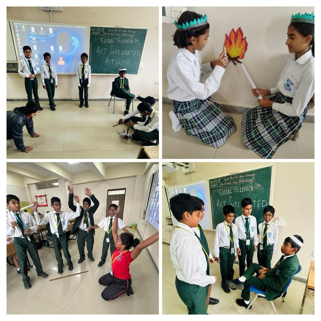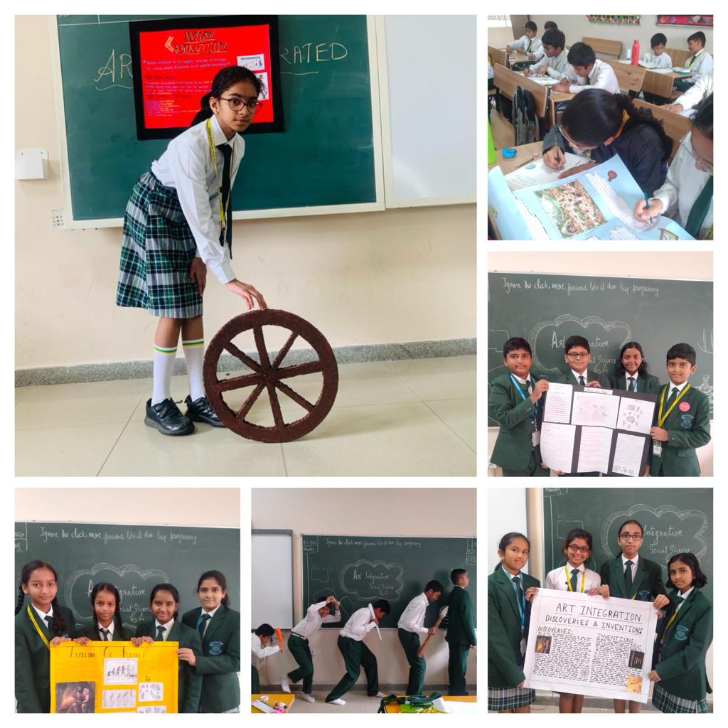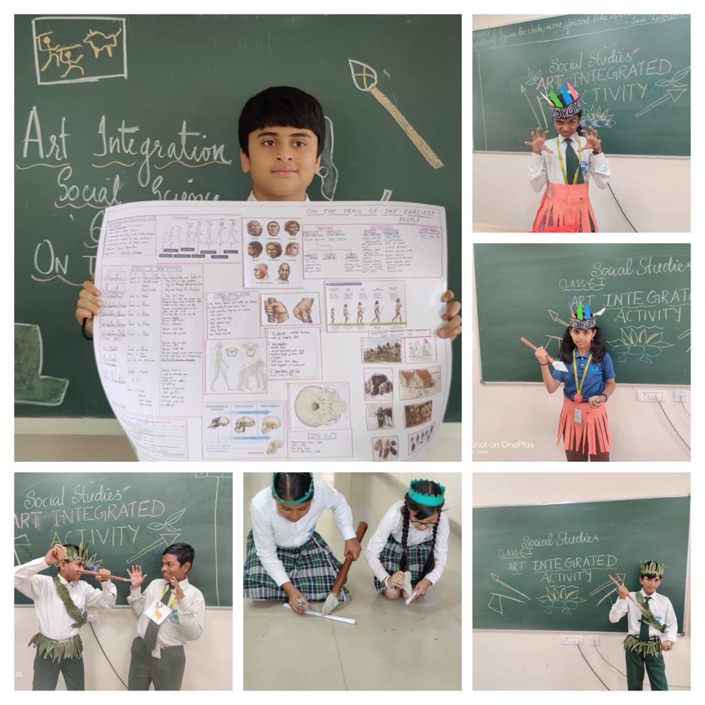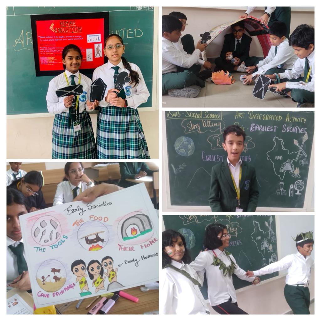 We’re thrilled to share an exciting learning initiative at Vydehi School of Excellence by our ‘GRADE 6’ students who actively participated in Social Science Art-integrated activity on the topic ‘ON THE TRAIL OF THE EARLIEST PEOPLE’, exploring this rich period and showcasing their creative flair as they breathed life into the historical narratives through their chosen art forms. The main aim of the activity was to encourages students to think critically about historical narratives, making connections and gain a comprehensive insight into the daily lives, traditions, and innovations of ancient civilizations.
