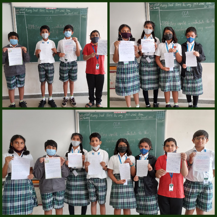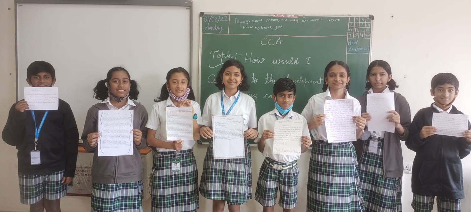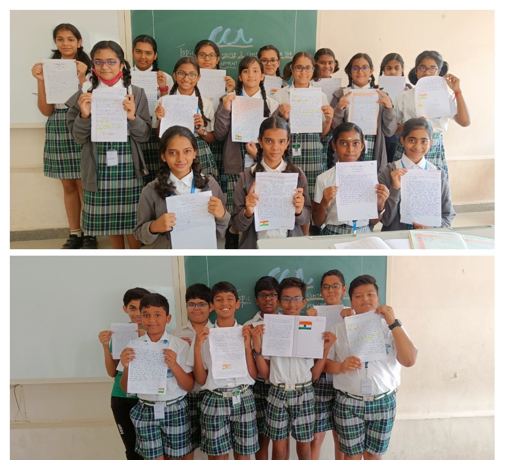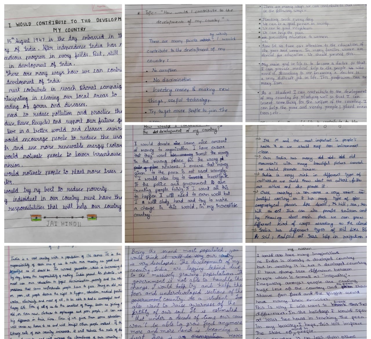 Grade 7 students expressed their imagination and logical thinking in the form of paragraph writing on the topic, ‘How would I contribute to the development of my country?’