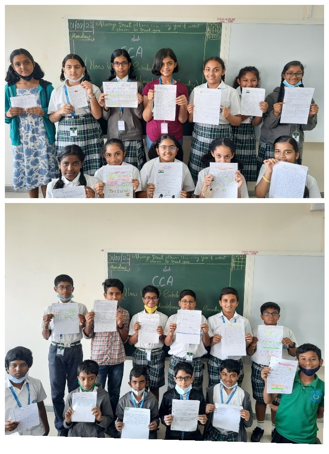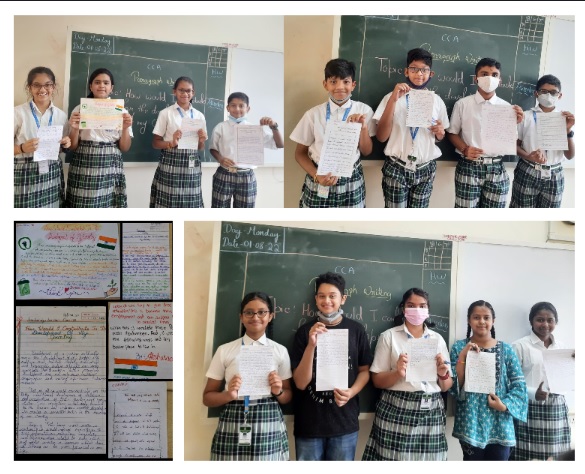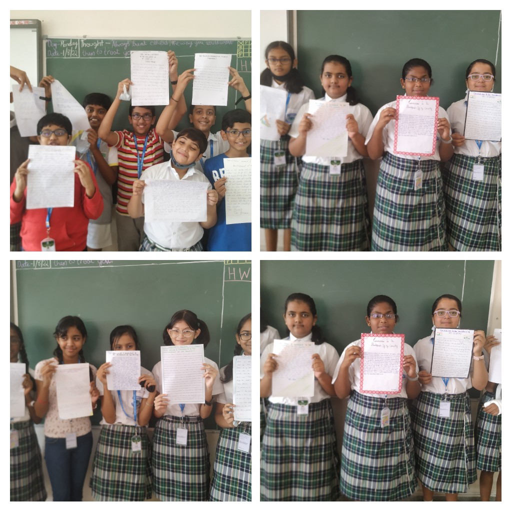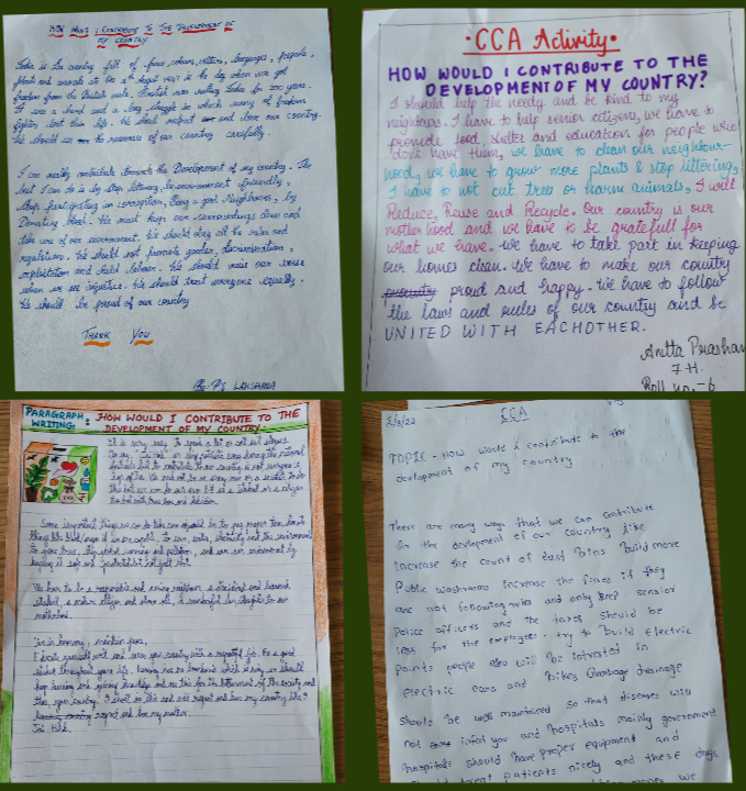 Grade 7 students expressed their imagination and logical thinking in the form of paragraph writing on the topic, ‘How would I contribute to the development of my country?’