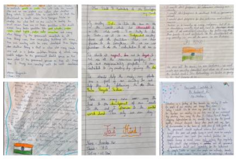 They wrote paragraphs on this theme which helped them to know more about their political rights and responsibilities. This activity not only makes them imaginative but also knowledgeable about practical things.