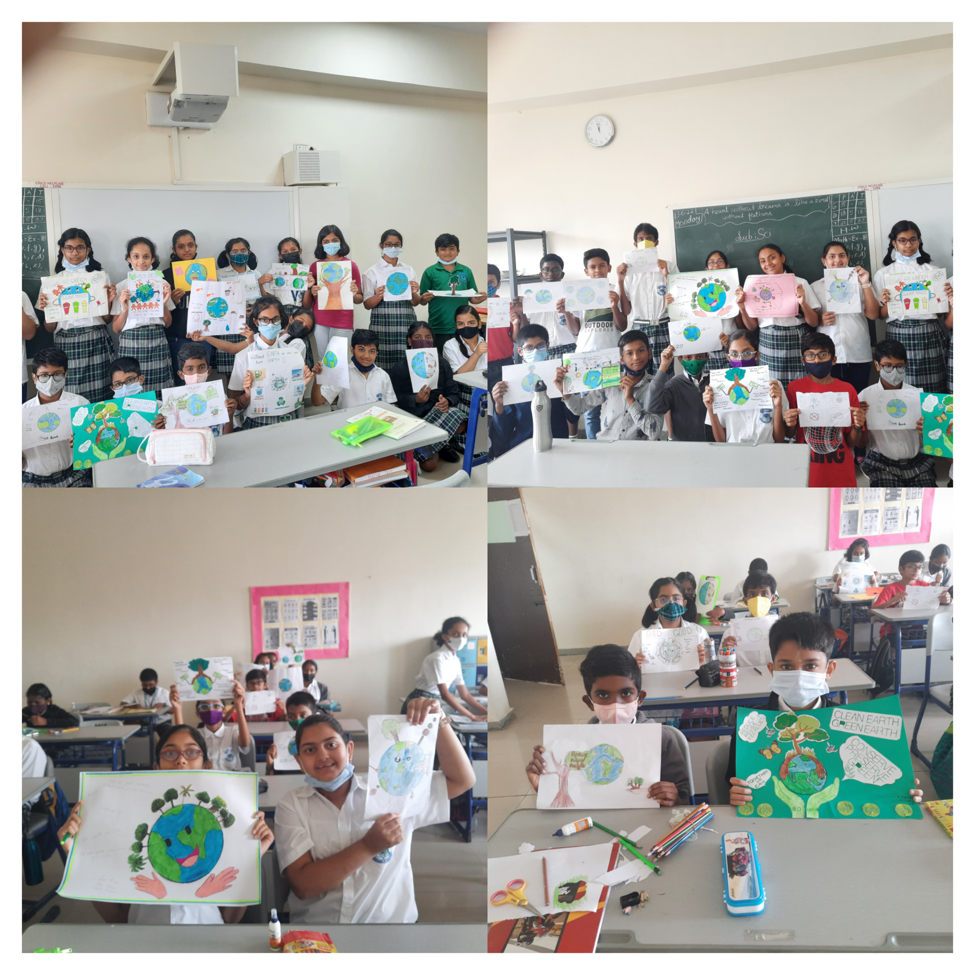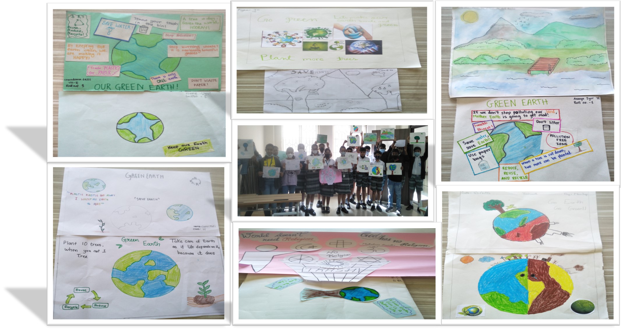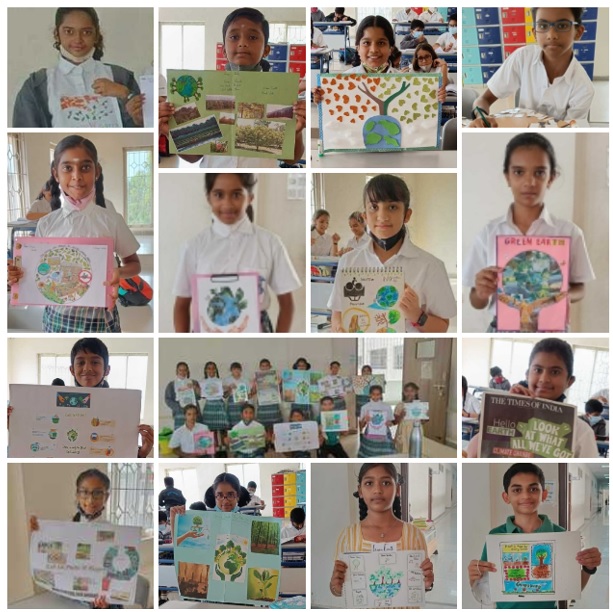 Earth is the only place that can sustain life and ecosystem. Our school, Vydehi School of Excellence celebrated Green Earth as CCA on 13 th June to Grade 7 to encourage the students and others also to make them aware of the need of the greenery on Earth. So, we gave topic to the students Green Earth and told them to make collage on this topic. The students participated with a lot of enthusiasm . It was amazing to watch the students participating in the competition and putting so many ideas in the form of collage to explain how to make Earth greener. It was very difficult to choose the winners but however we made decisions.
