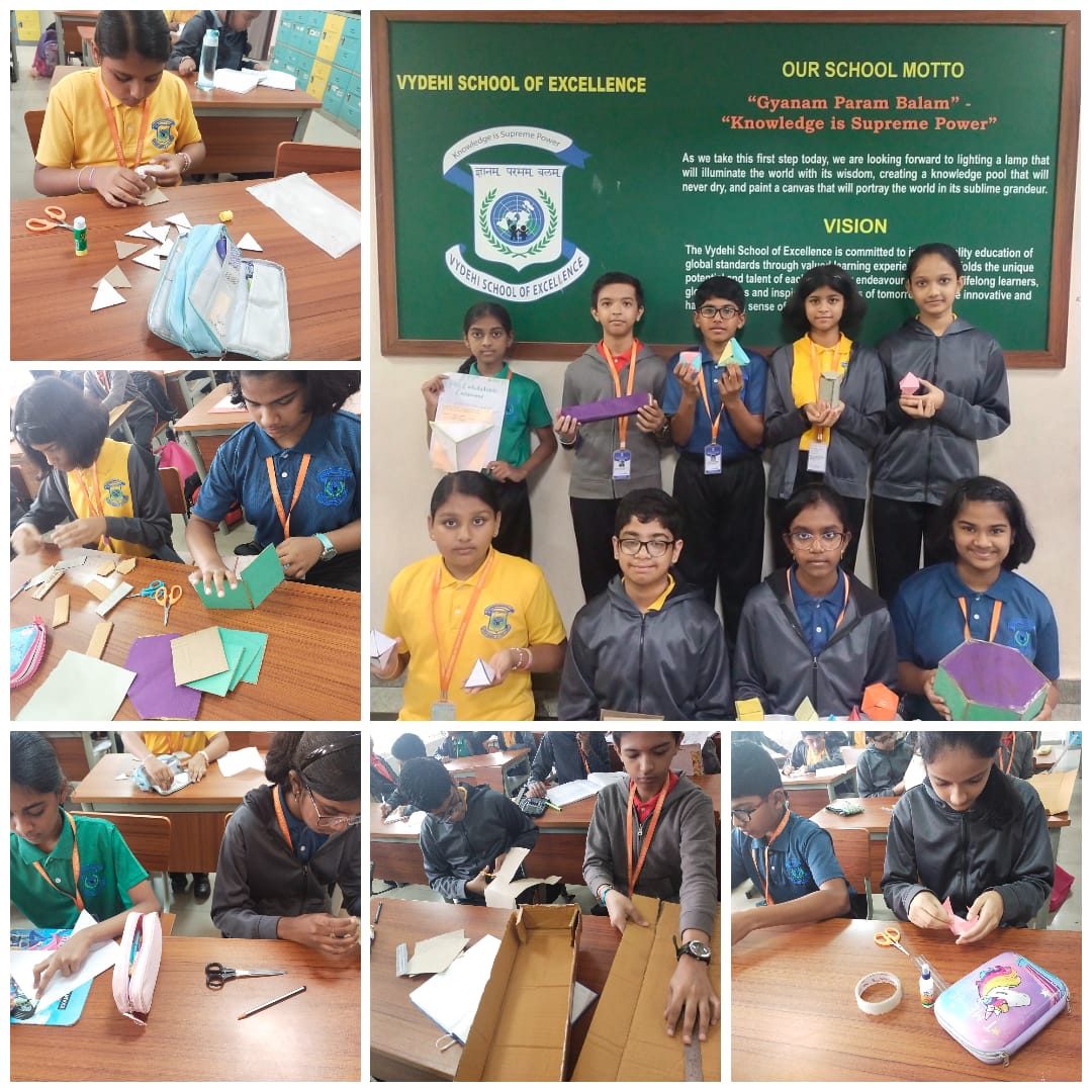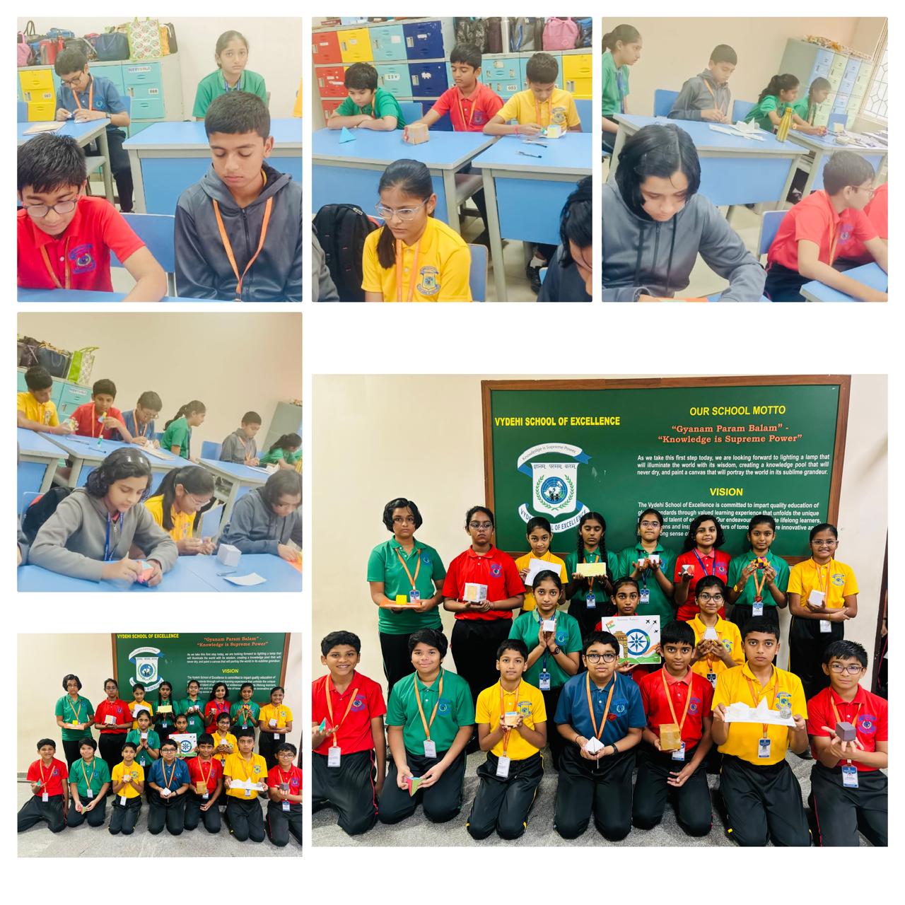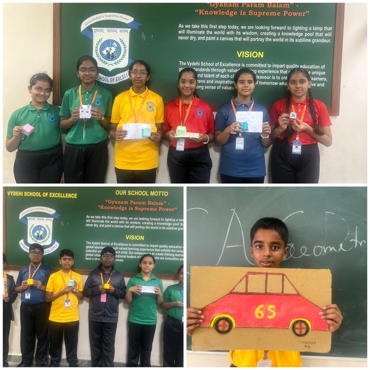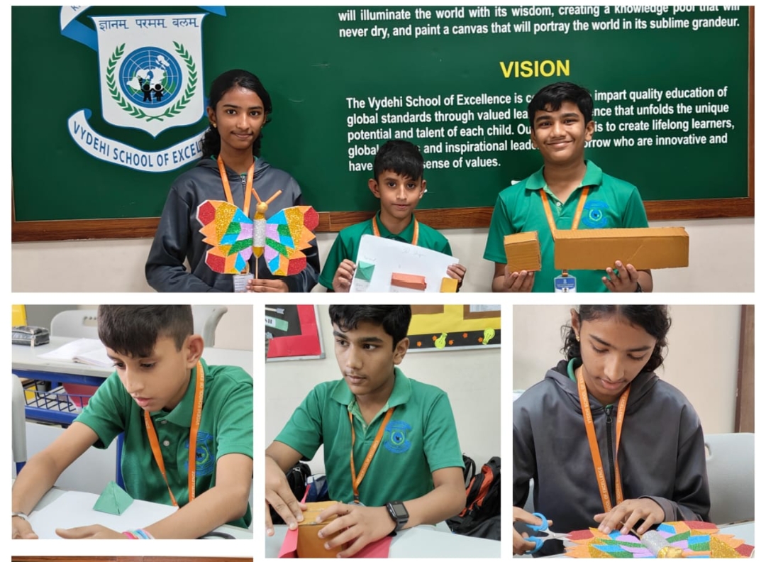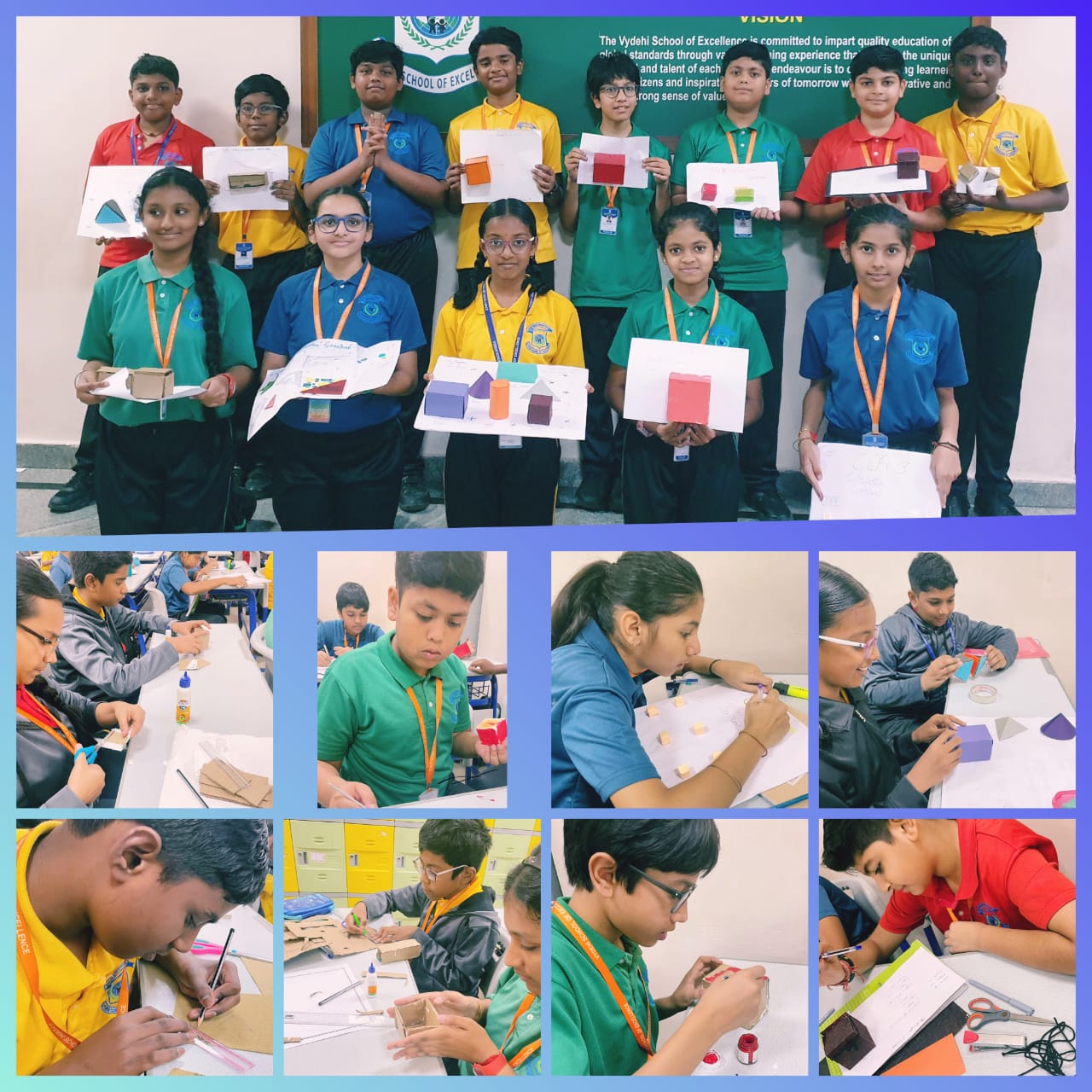 To bring out the importance of shapes to every child, through the exploration of symmetry and patterns, Vydehi school of Excellence has conducted the CCA Activity on Wednesday 07-08-2024, for the month of August on the topic, ‘Calculation Carnival’ for Grade 7 where the students created composite shapes or designed their own unique shapes thereby fostering critical thinking, problem-solving skills, with an appreciation for the beauty of Mathematics.