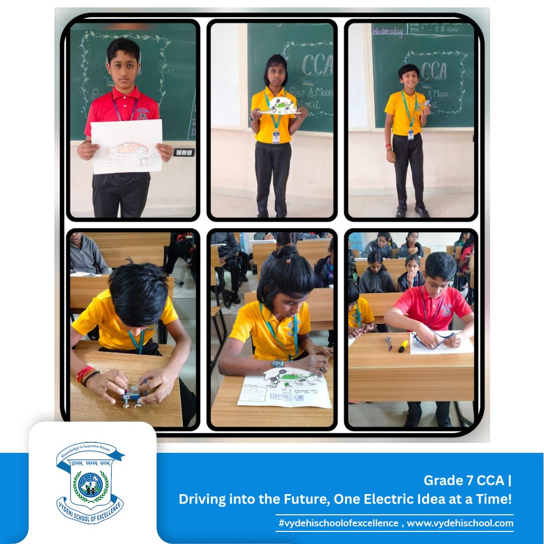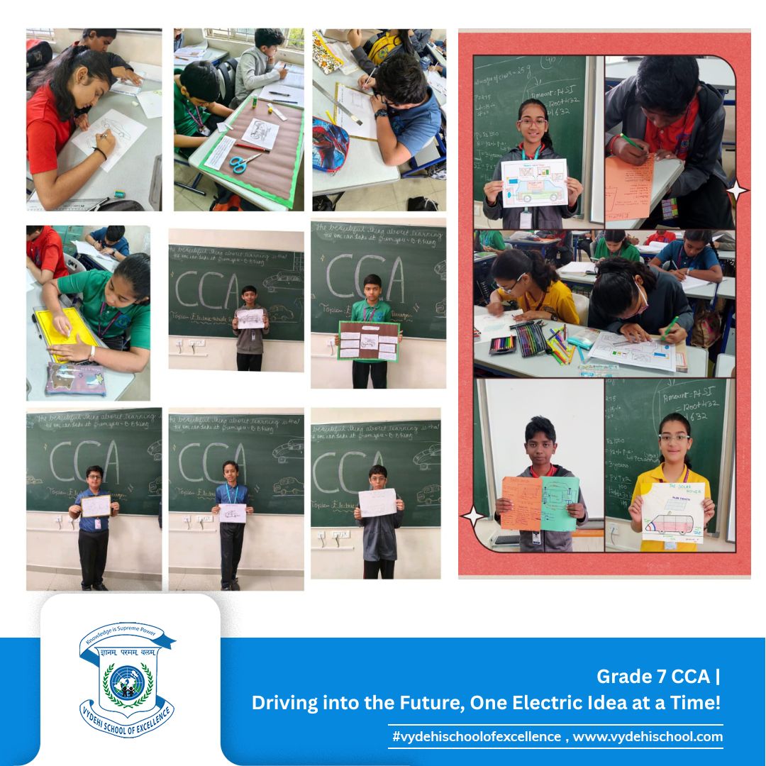 The Grade 7 innovators of Vydehi School of Excellence powered up their creativity on 15th October 2025 with the CCA Activity – “Electric Vehicle Design.” 💡✨