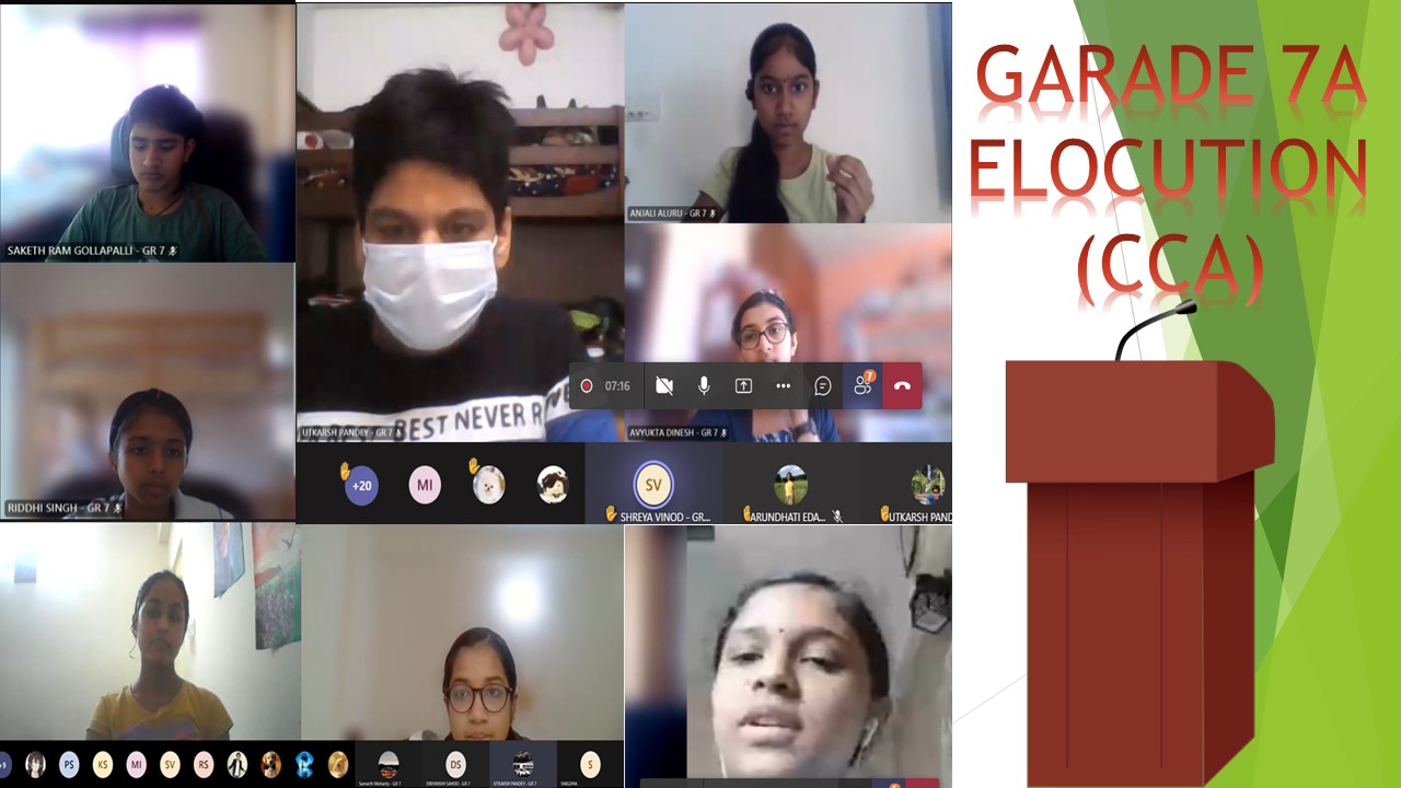 Elocution is a speech competition where students are allotted with a topic to talk about. Usually, all participants talk about the same topic and the one who gave good speech is selected as a winner of elocution competition. Todays’ topic was TIME AND TIDE WAIT FOR NONE, performed and participated by many 7th graders. Students thoroughly enjoyed and gave a tough competition to each other.