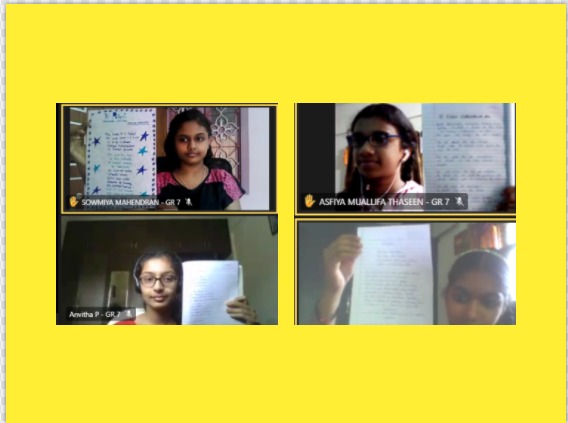 For the CCA, grade 7 was asked to write a poem on Havildar K Palani from Ramanathapuram has been honoured with the Vir Chakra (posthumously) for his sacrifice during ‘Operation Snow Leopard’ while defending the nation in the India-China stand-off at Galwan valley in Eastern Ladakh on June 15, 2020. This made the students aware of not only the sacrifice and bravery of a valiant K. Pilani and how and what did he do but also about the gallantry award presented to him. Poetry is a form of expression. Writing it lets us get out our feelings and thoughts on a subject while reading it encourages us to connect and find meaning in our experiences. Poetry can have a positive impact on the social and emotional learning of children. It may offer them a new way of thinking about something. Poetry is a form of expression. Writing it lets us get out our feelings and thoughts on a subject while reading it encourages us to connect and find meaning in our experiences. Poetry can have a positive impact on the social and emotional learning of children. It may offer them a new way of thinking about something.