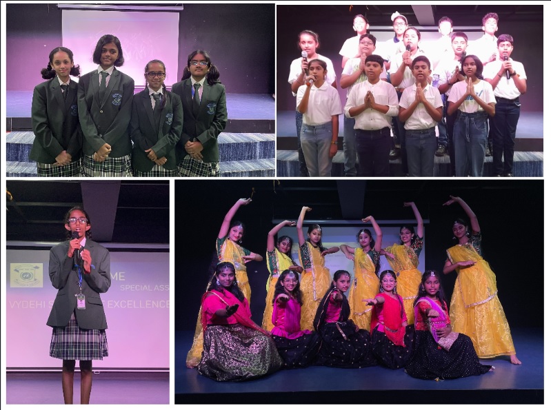To honour the hard work and determination towards this profession, a special assembly was organized by the sections of grade 7A, 7B, 7C & 7D with great gusto and gaiety. The theme of the assembly was “Guru, The Nation Builder.” The assembly commenced with the prayer, pledge, news bulletin and the theme-based performances. Wonderful Vydehians performed scintillating dance, songs, act to show their love, respect and gratitude towards the teachers. Every child has utilized the opportunity given to showcase their talents. The assembly ended with the national anthem.