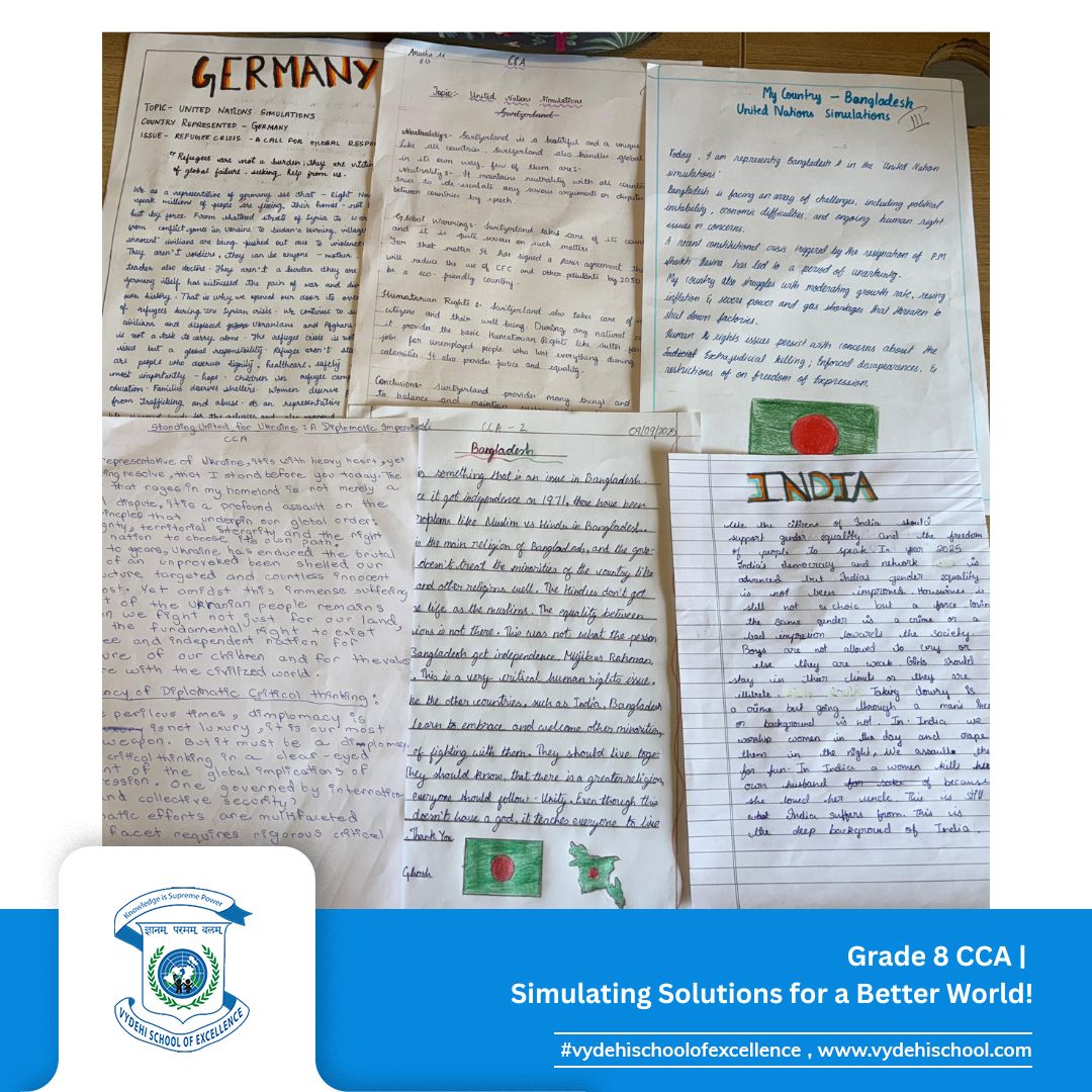 #VydehiSchoolOfExcellence #Grade8CCA #UnitedNationsSimulation #GlobalCitizens #EssayWriting2025 #YoungDiplomats #CriticalThinking #StudentVoices #ProudToBeAVydehian #FutureLeaders #InspiringYoungMinds